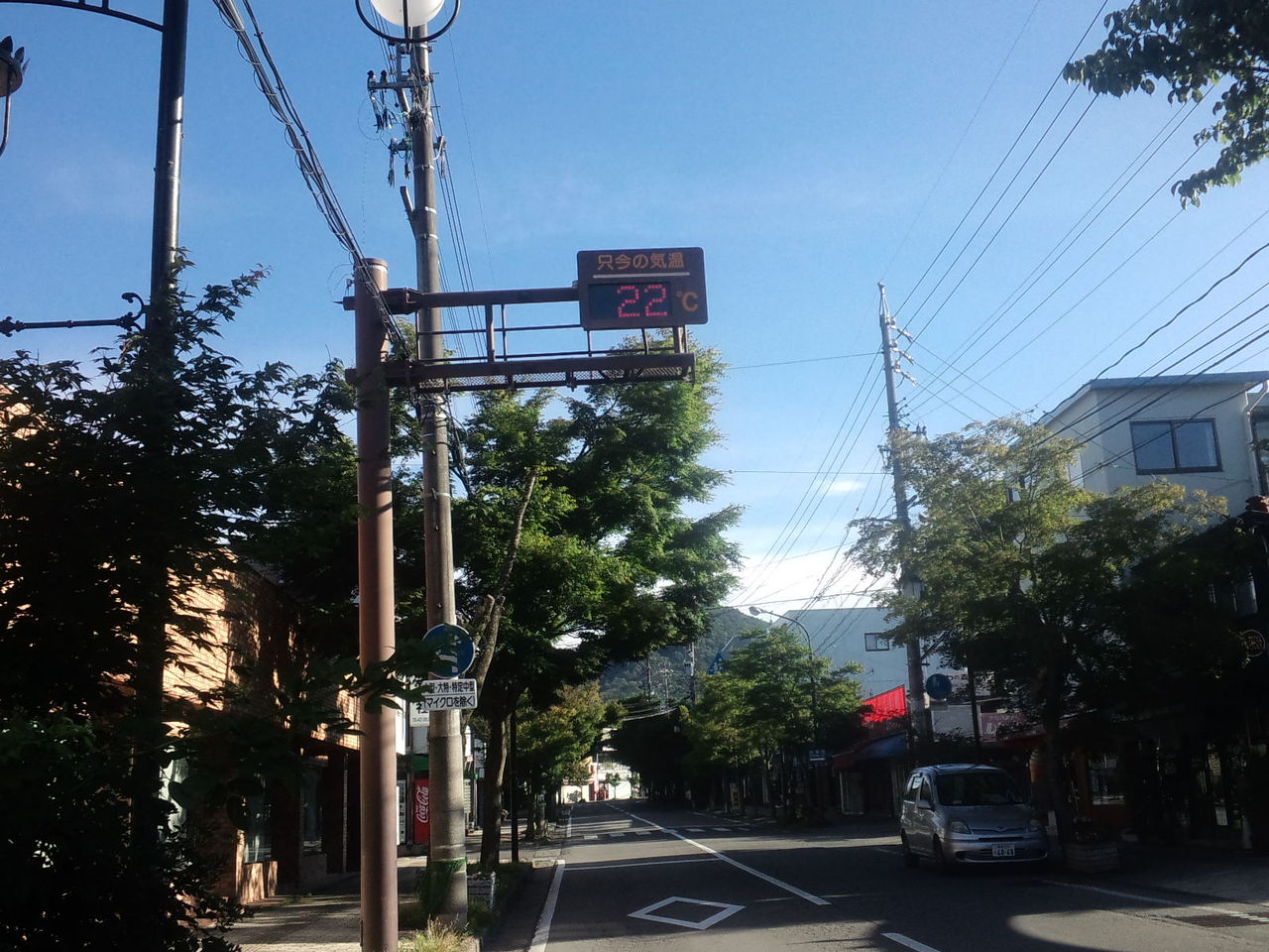 今朝の軽井沢の気温は22℃、天気は快晴です。