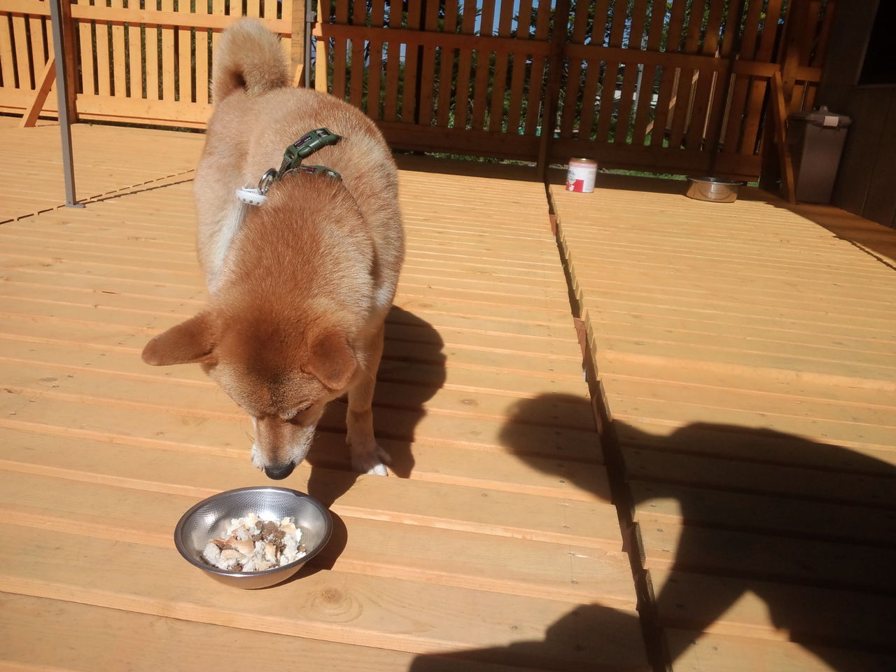 生涯預かり柴タロウ君、少しずつ食べてます。