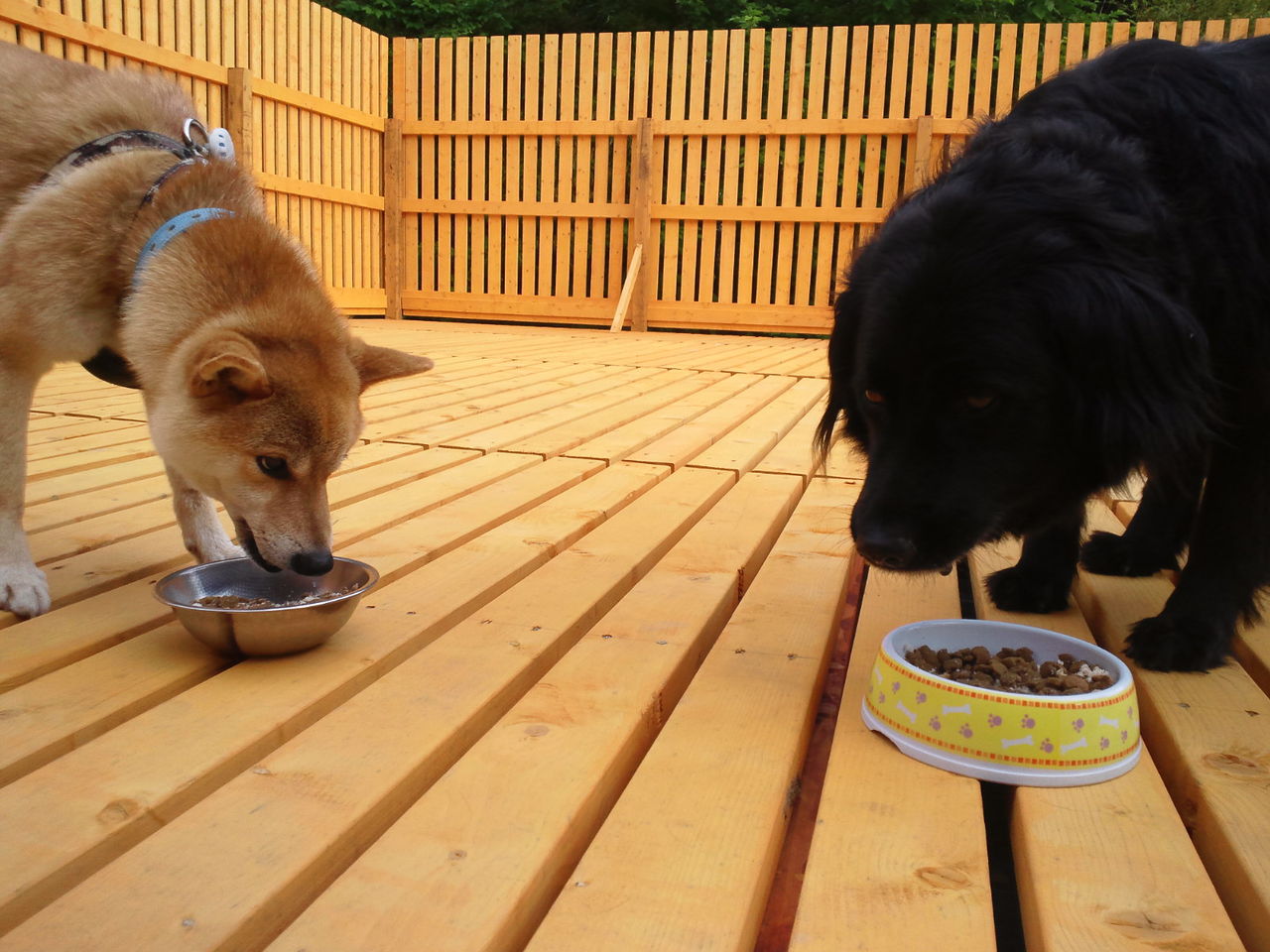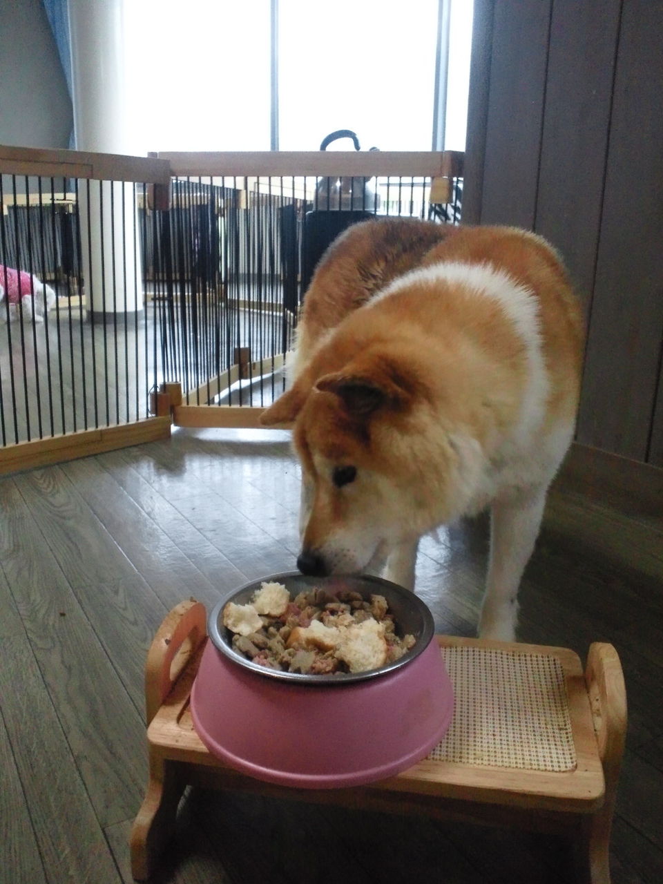 生涯お預かり柴犬タローくんゆっくり食べています。