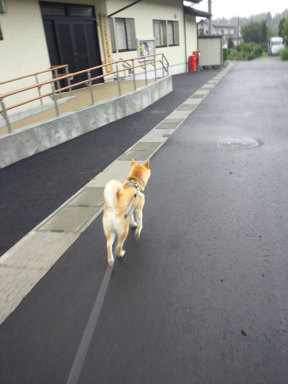 今朝は生憎の雨です。 でも、小雨だったのでほとんど濡れずにすみました! おしっこたくさんしました。