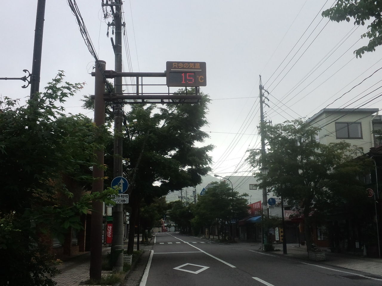 今朝の軽井沢の気温は15℃、天気は曇り空です。