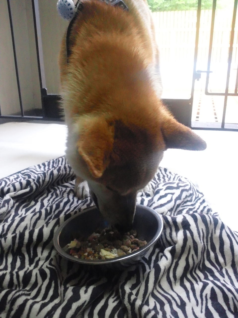 生涯お預かり柴犬タローくんゆっくり食べています。