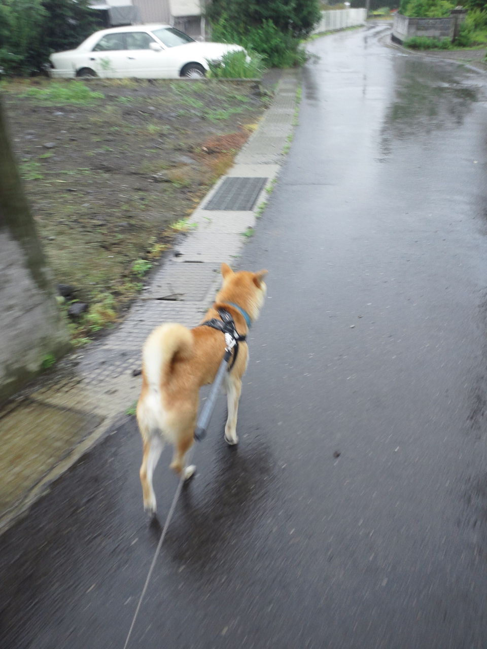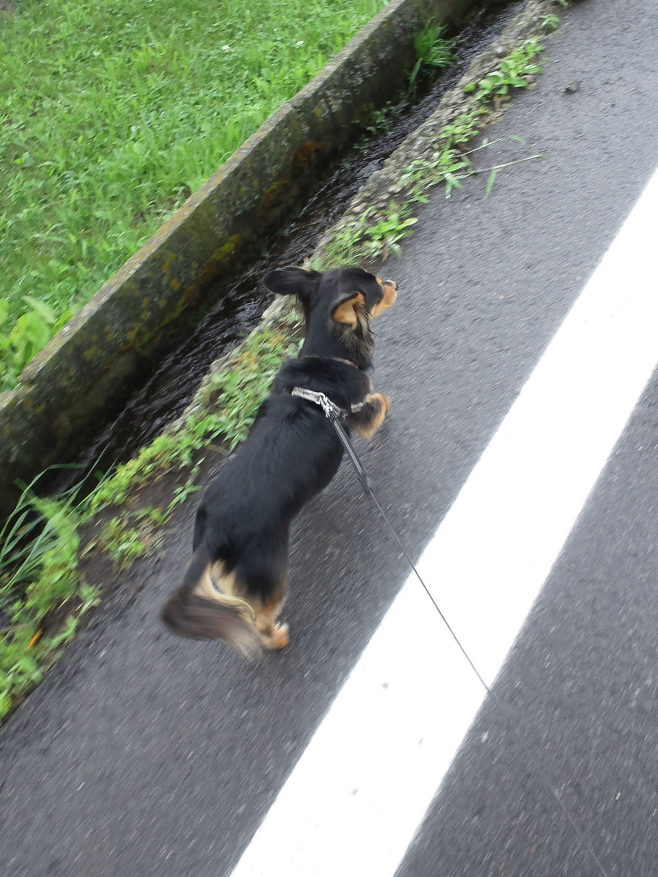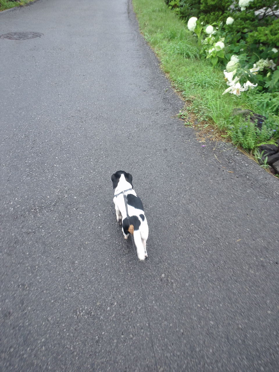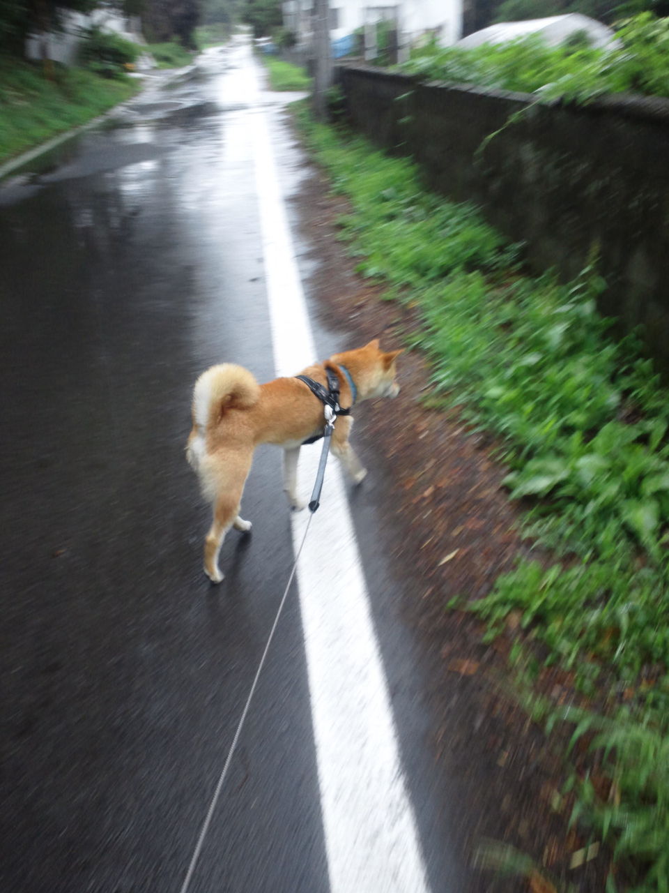 先日の土砂降りに比べたら小降りなのでハチくん元気に歩いていました。