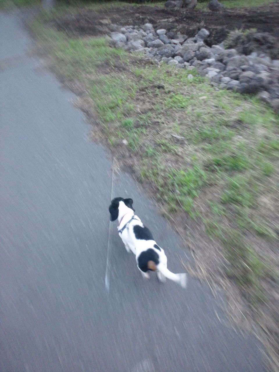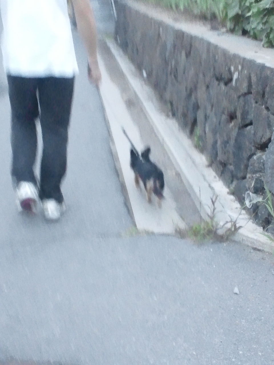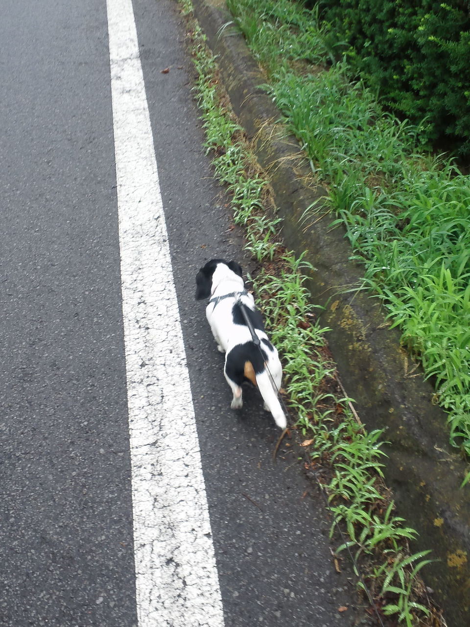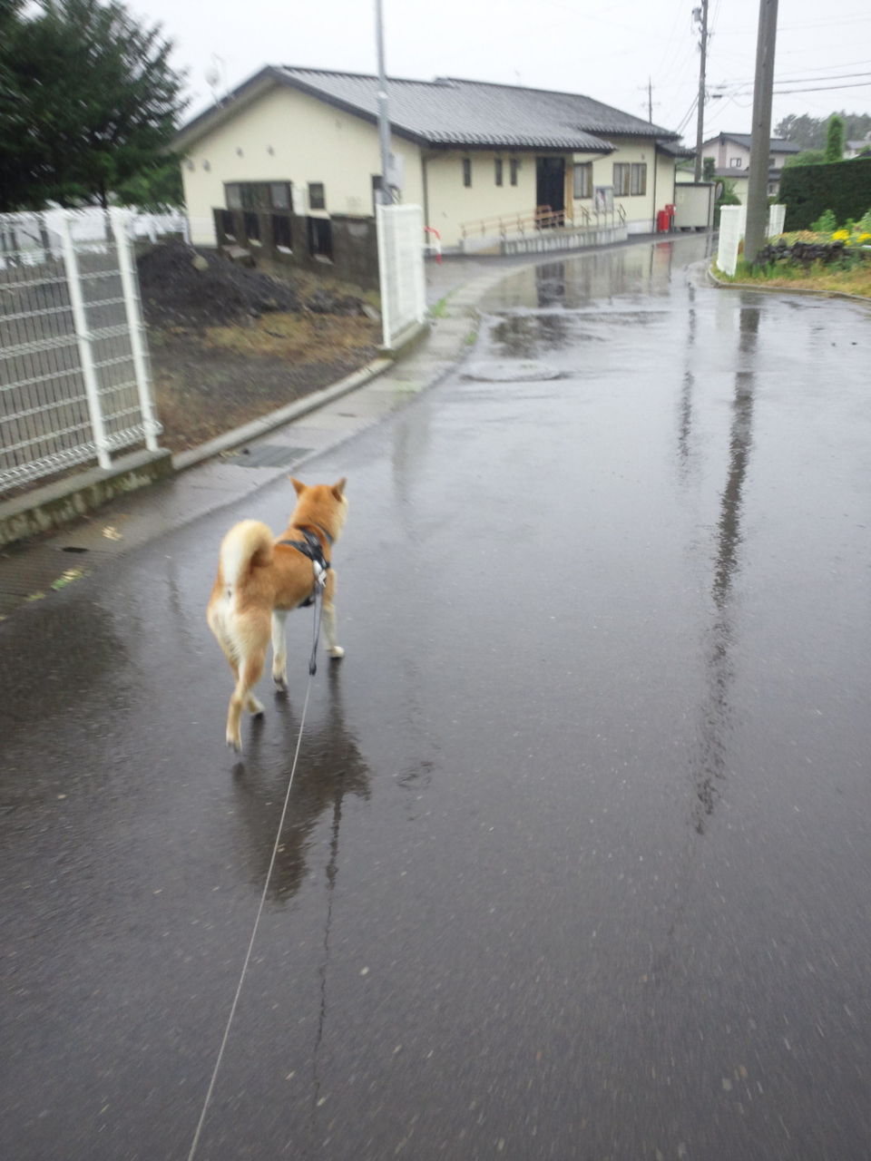 先日の土砂降りに比べたら小降りなのでハチくん元気に歩いていました。