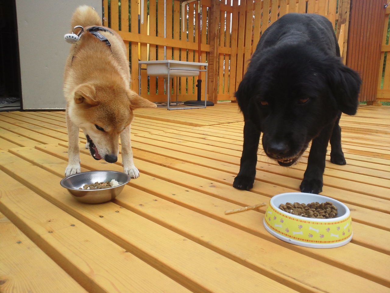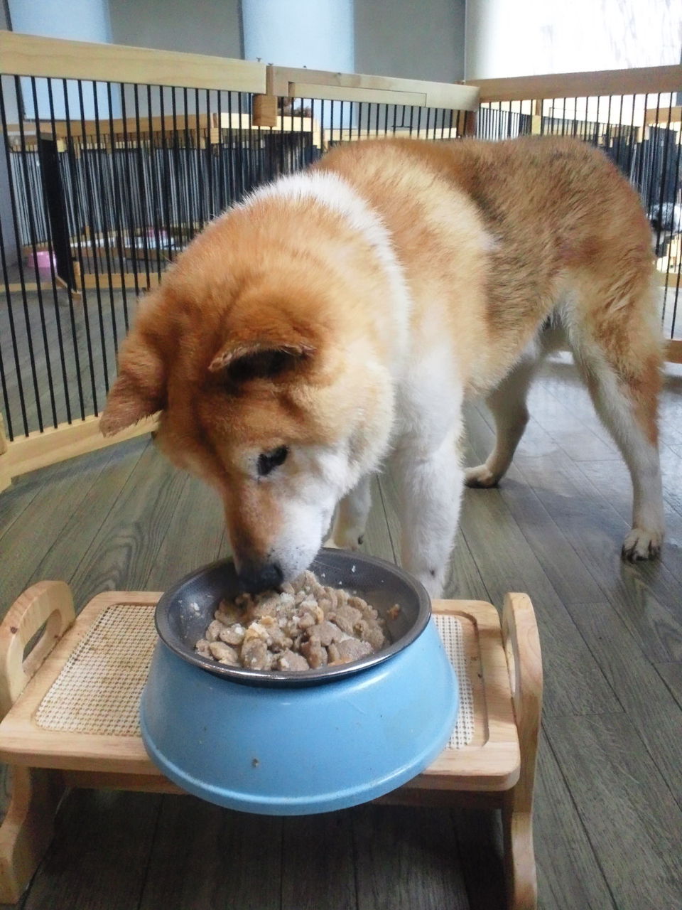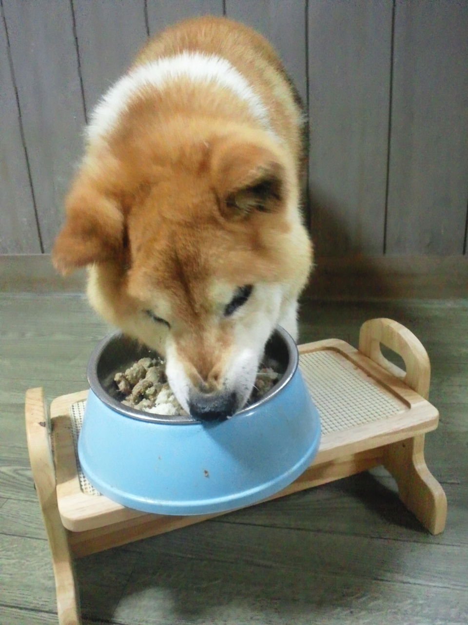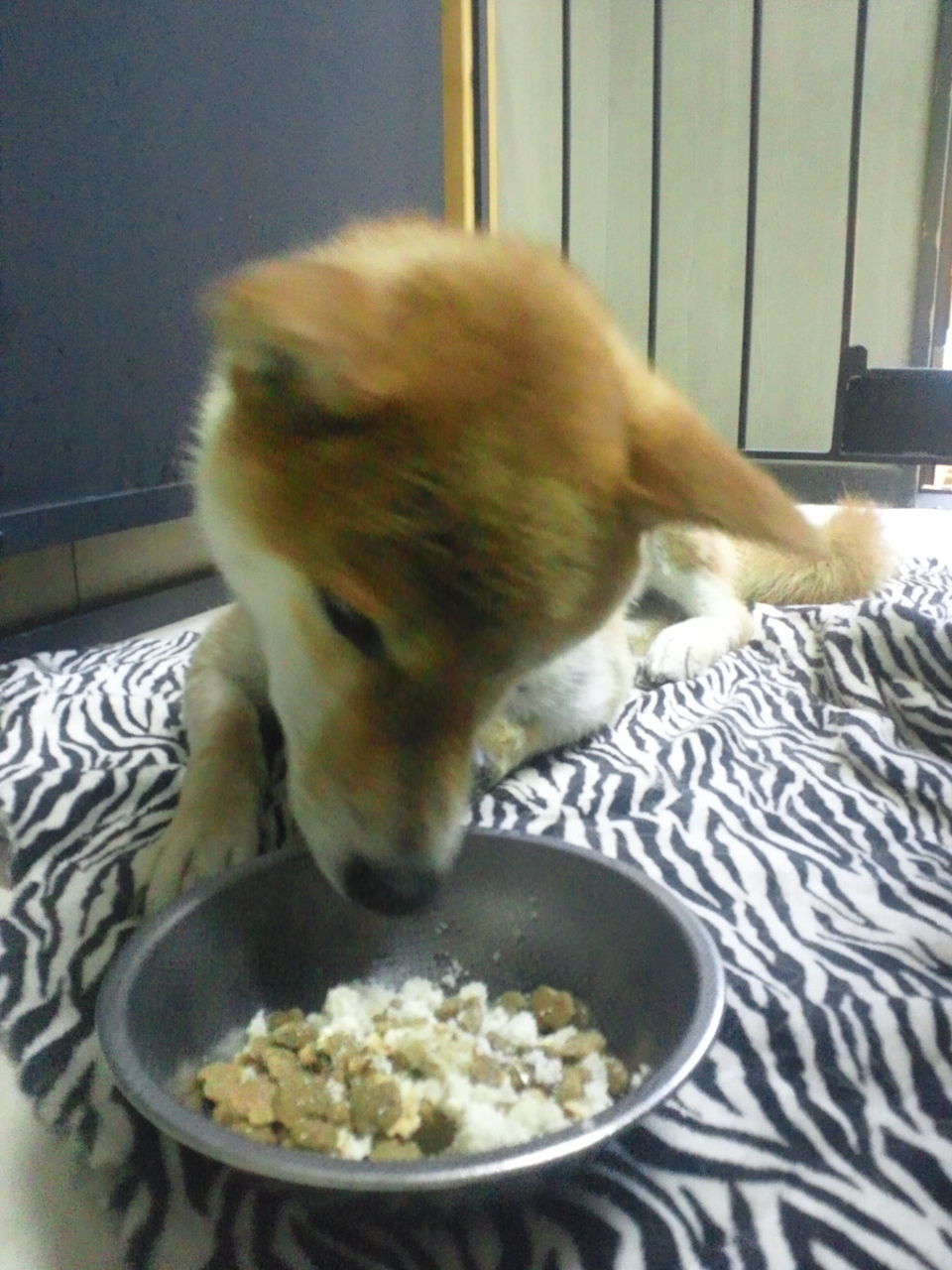 生涯お預かり柴犬タローくんゆっくり食べています。
