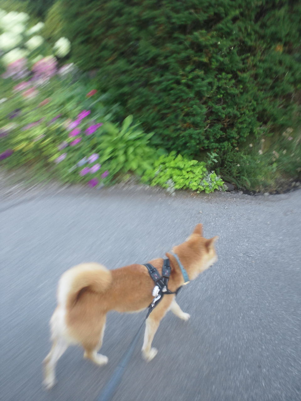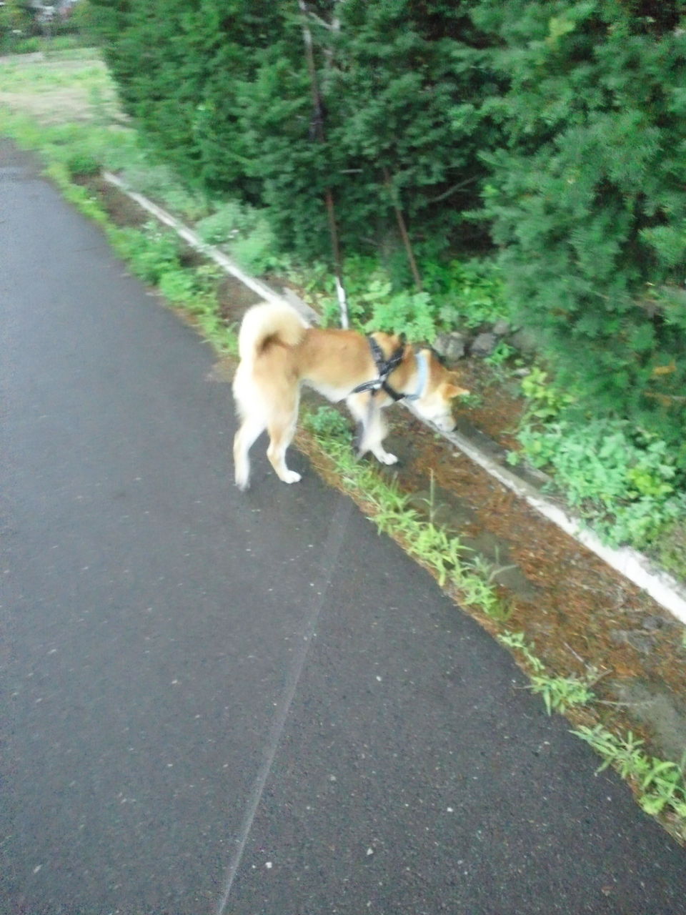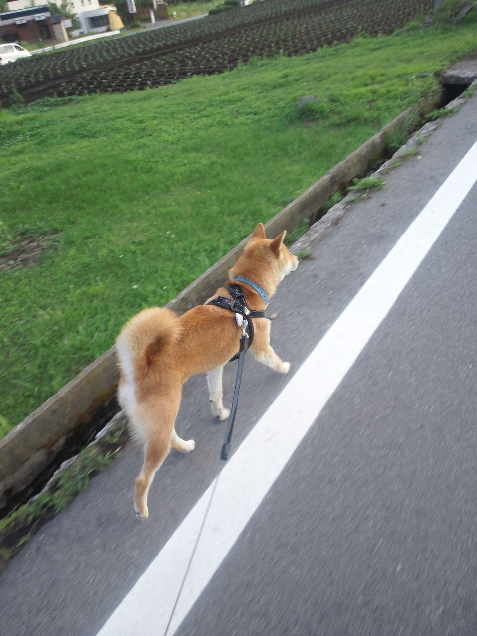 夕方涼しくなってからお散歩出発です。 犬やスケボー少年に会いました。 ハチくんは犬よりスケボー少年の方が気になるらしく、ずっと見ていました。