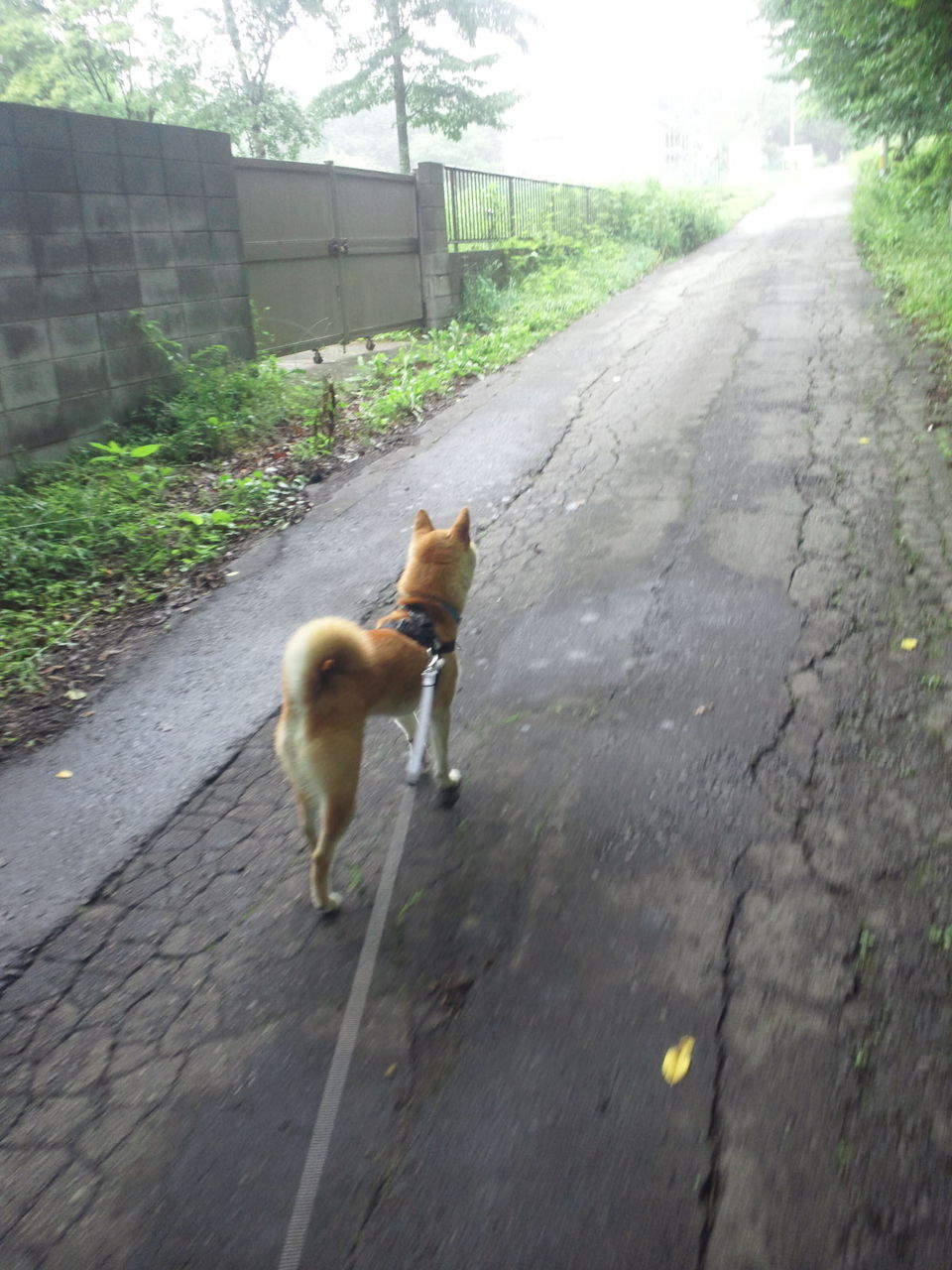 途中から雨がポツポツ。 小雨だったのでまだ行けると思ったら急に暗くなりザーッと来ました…。 ハチくんもビックリな様子。