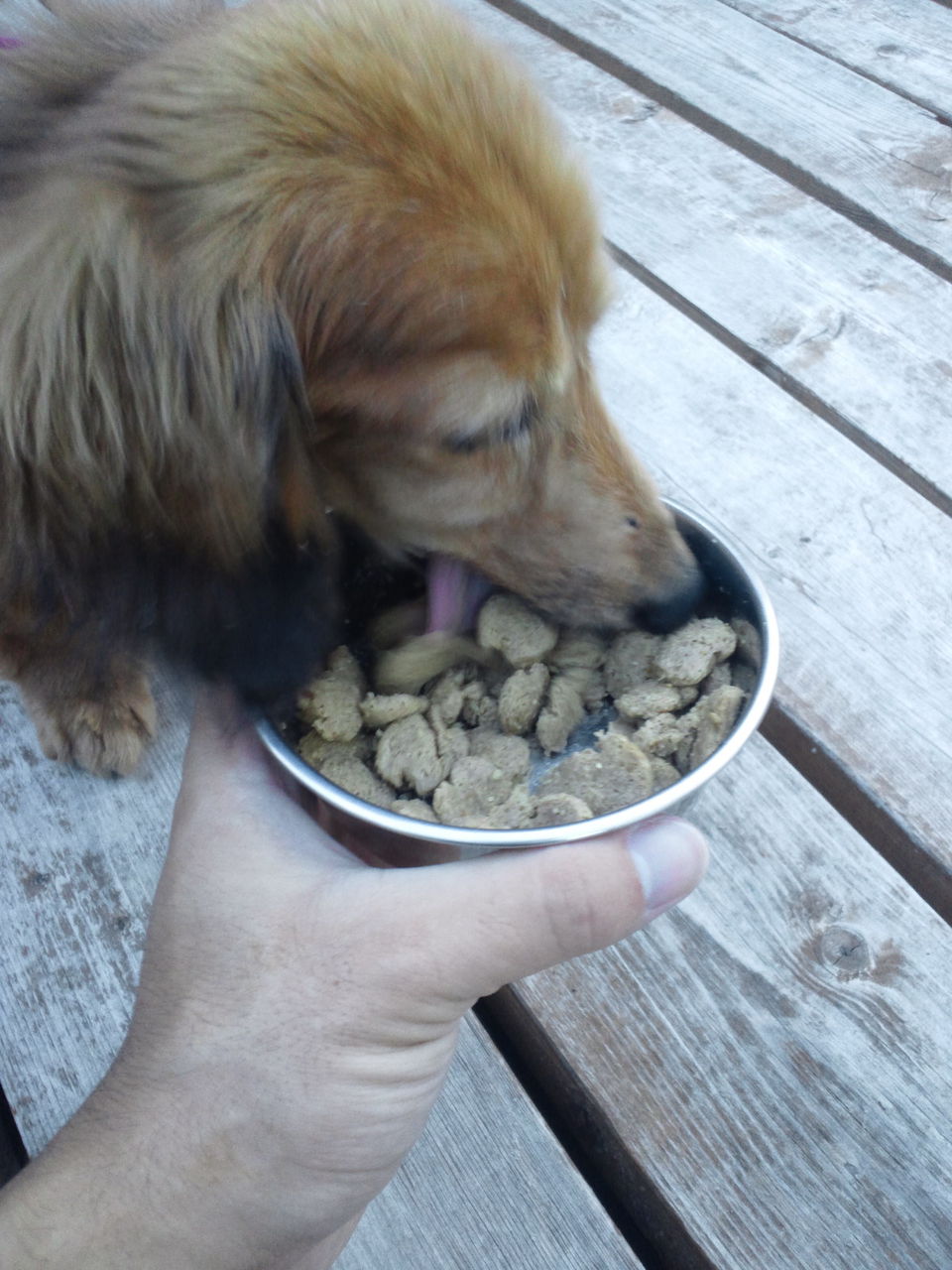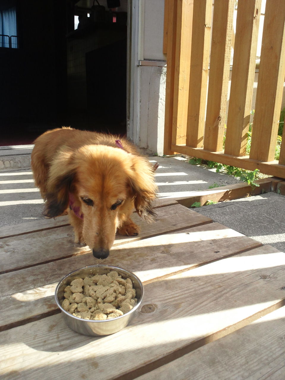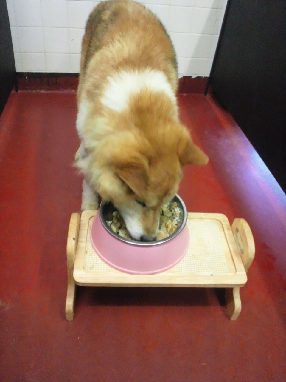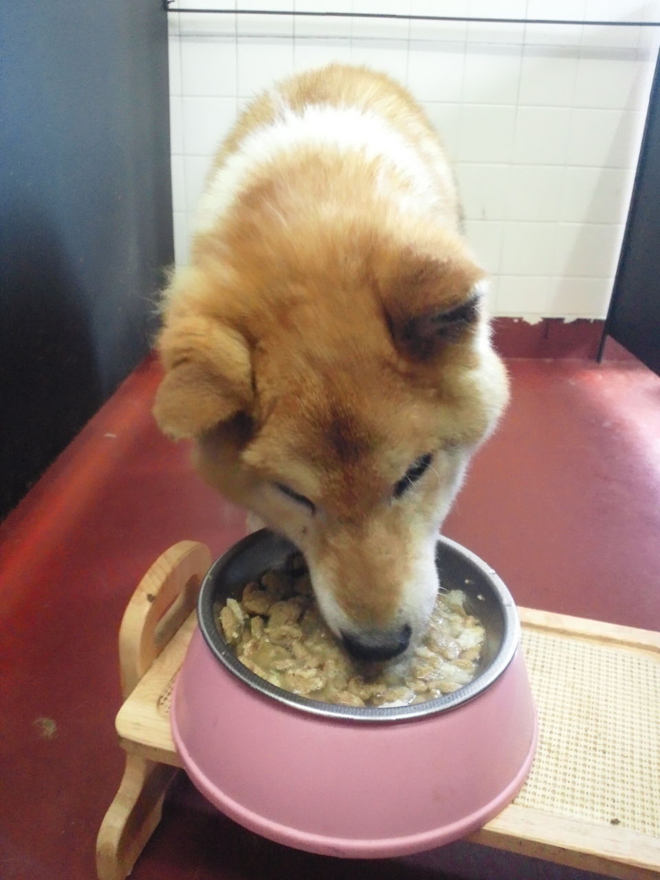 生涯お預かり柴犬タローくんゆっくり食べています。