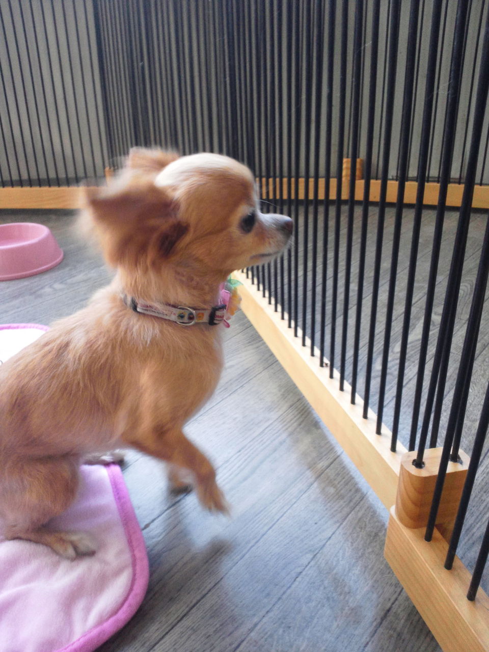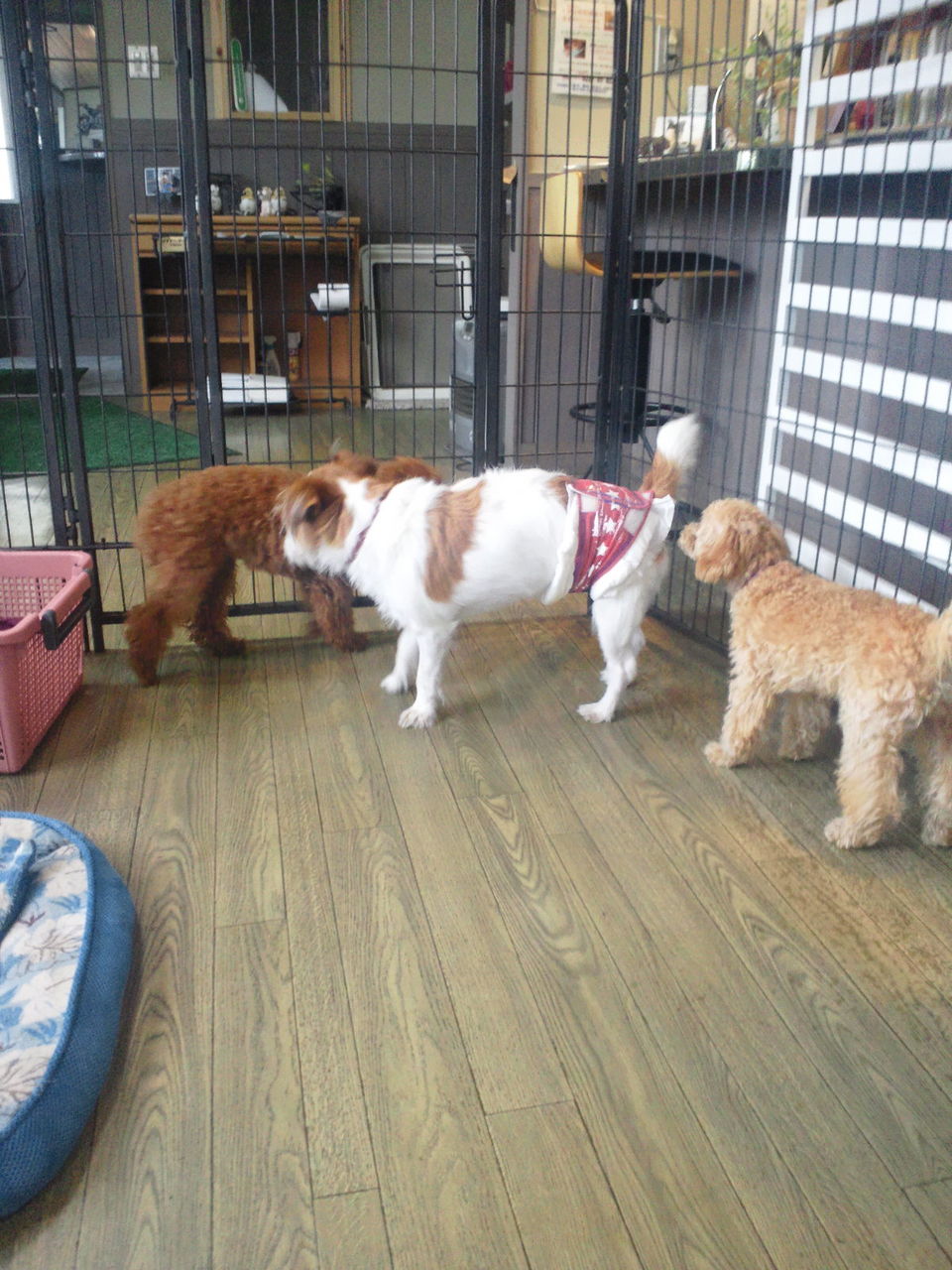 久しぶりなので緊張気味かな? とりあえずサークルにいてもらい、様子を見ながらみんなと一緒にしたいと思います。