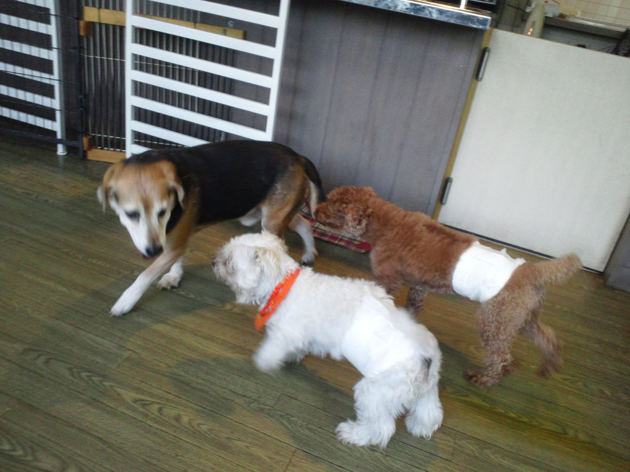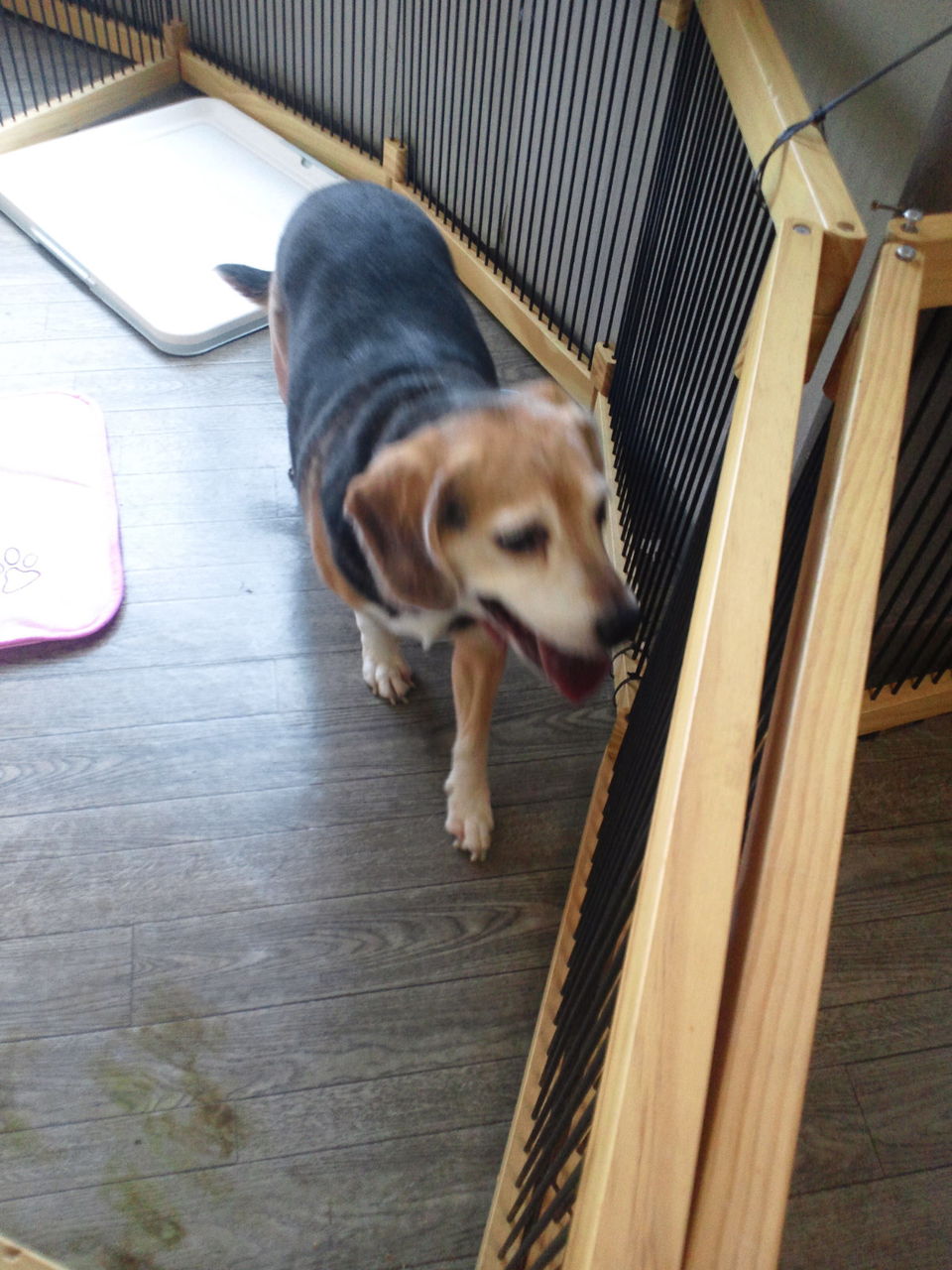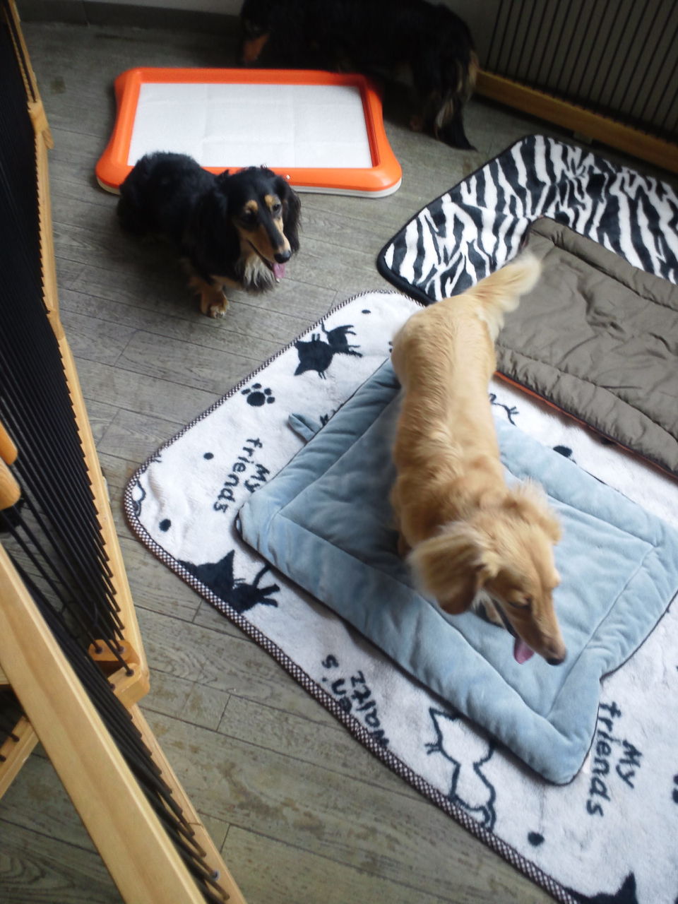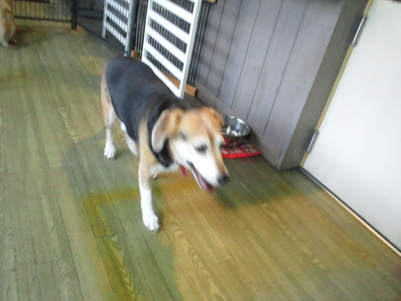 ちょっとわんちゃんが苦手そうな感じですが、すぐにサークルから出てみんなと一緒にいます。