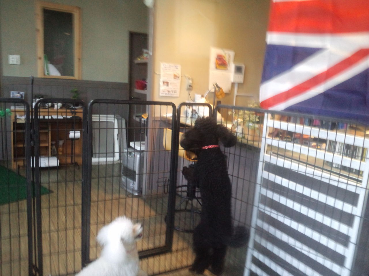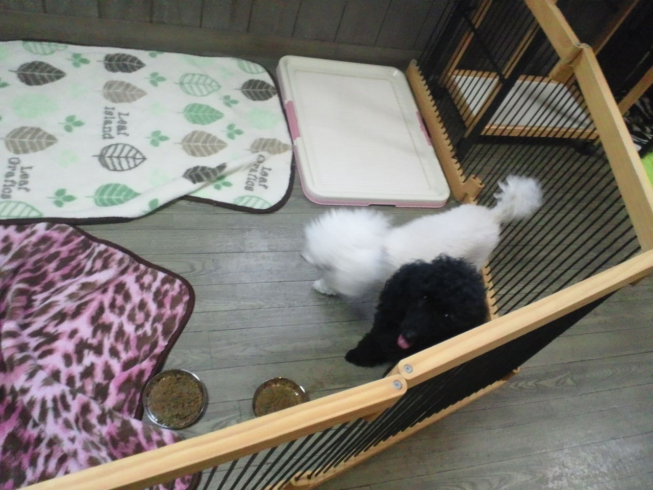 トイプークッキーちゃん(黒)とミルクちゃん(白)がチェックインしました。 ミルクちゃんはすぐに馴れましたがクッキーちゃんはまだ緊張気味。最初は入口のサークルを飛び越える勢いでジャンプしてました。