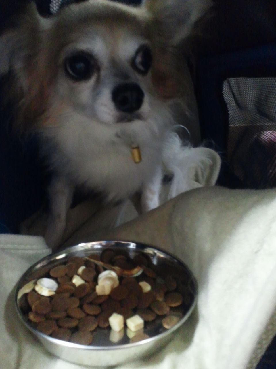 チワワトリオココアちゃんしっかり完食しました。キングくん、ぽんずくん口をつけません。
