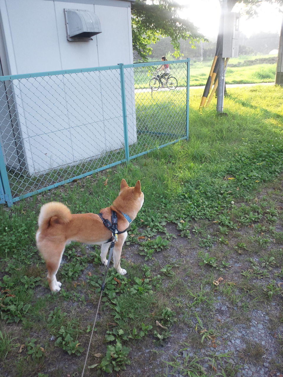 サンラインを渡ろうとしたら自転車の団体さんが目の前を通っていきました。 ずっと目で追いかけているハチくんでした。