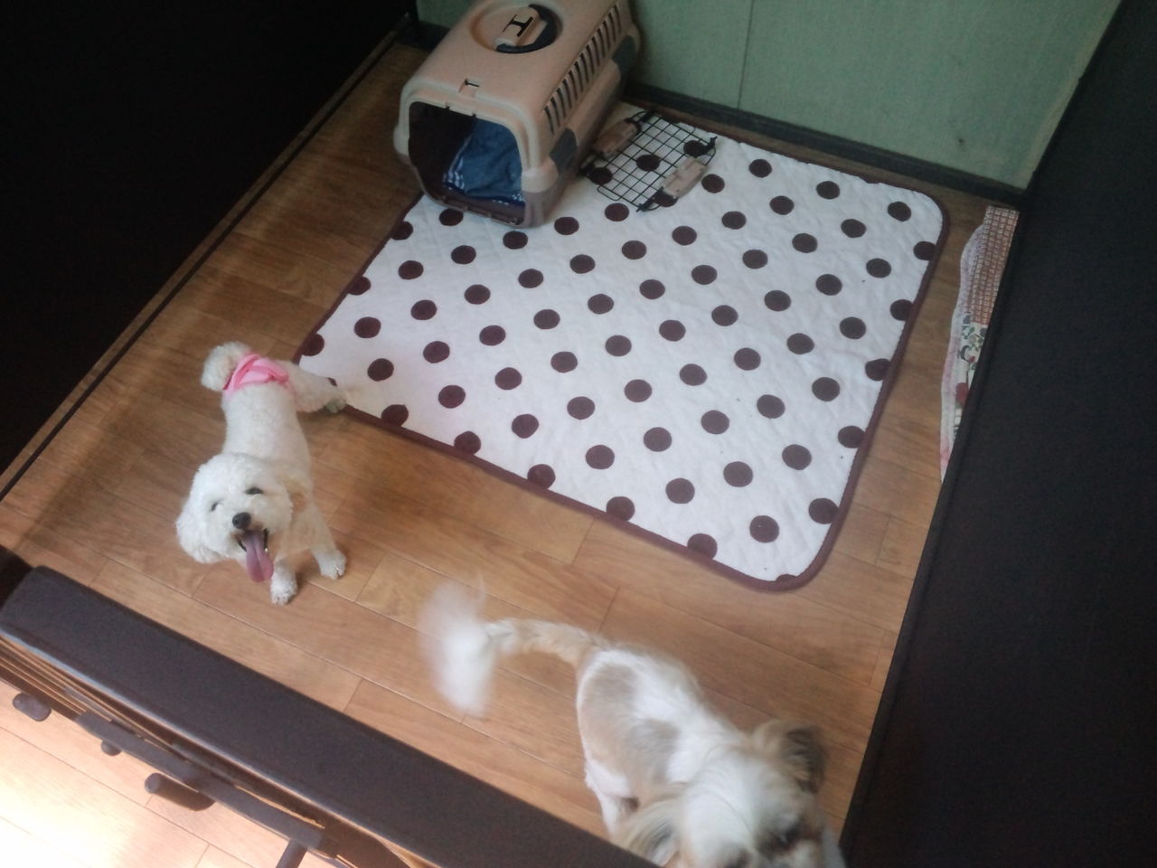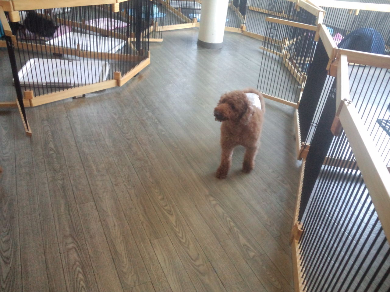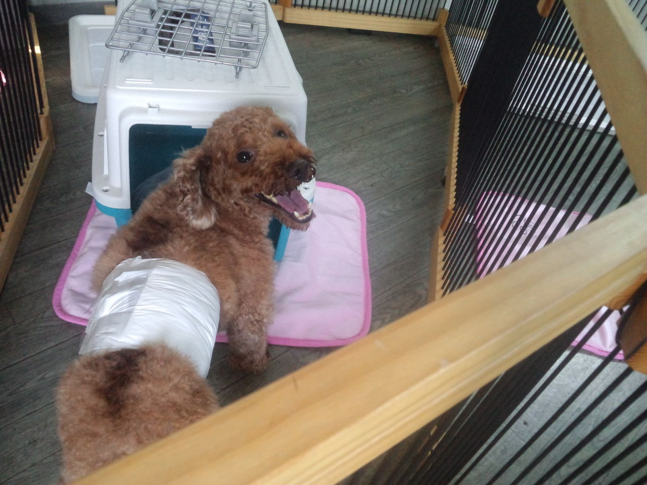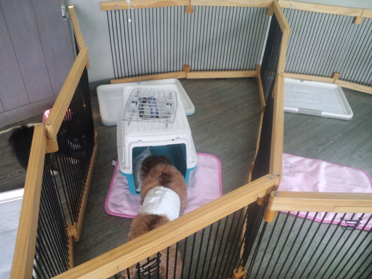 他のわんちゃんが苦手なのでサークルにいてもらいます。 すぐに落ち着いて大人しくしてくれています。