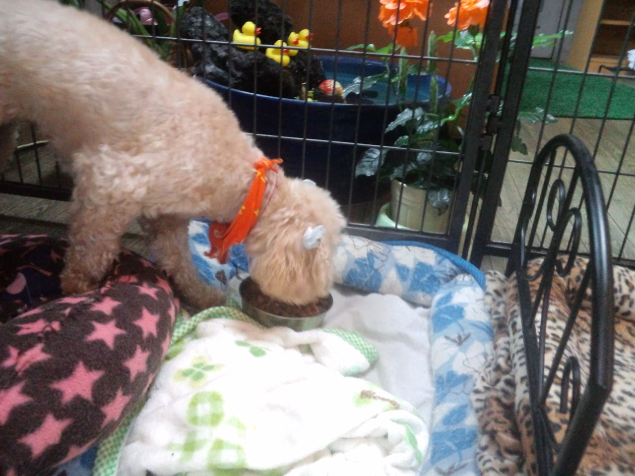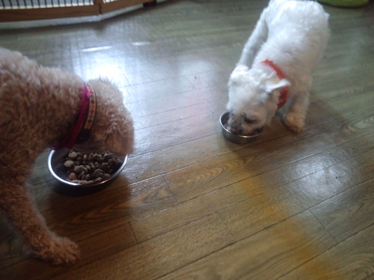 長期預かりトイプーエジソン君、少し口を付けただけです。 生涯預かりマルチーズキュー君、しっかり完食しました。 トイプーテディ君とベラちゃん、しっかり完食しました。