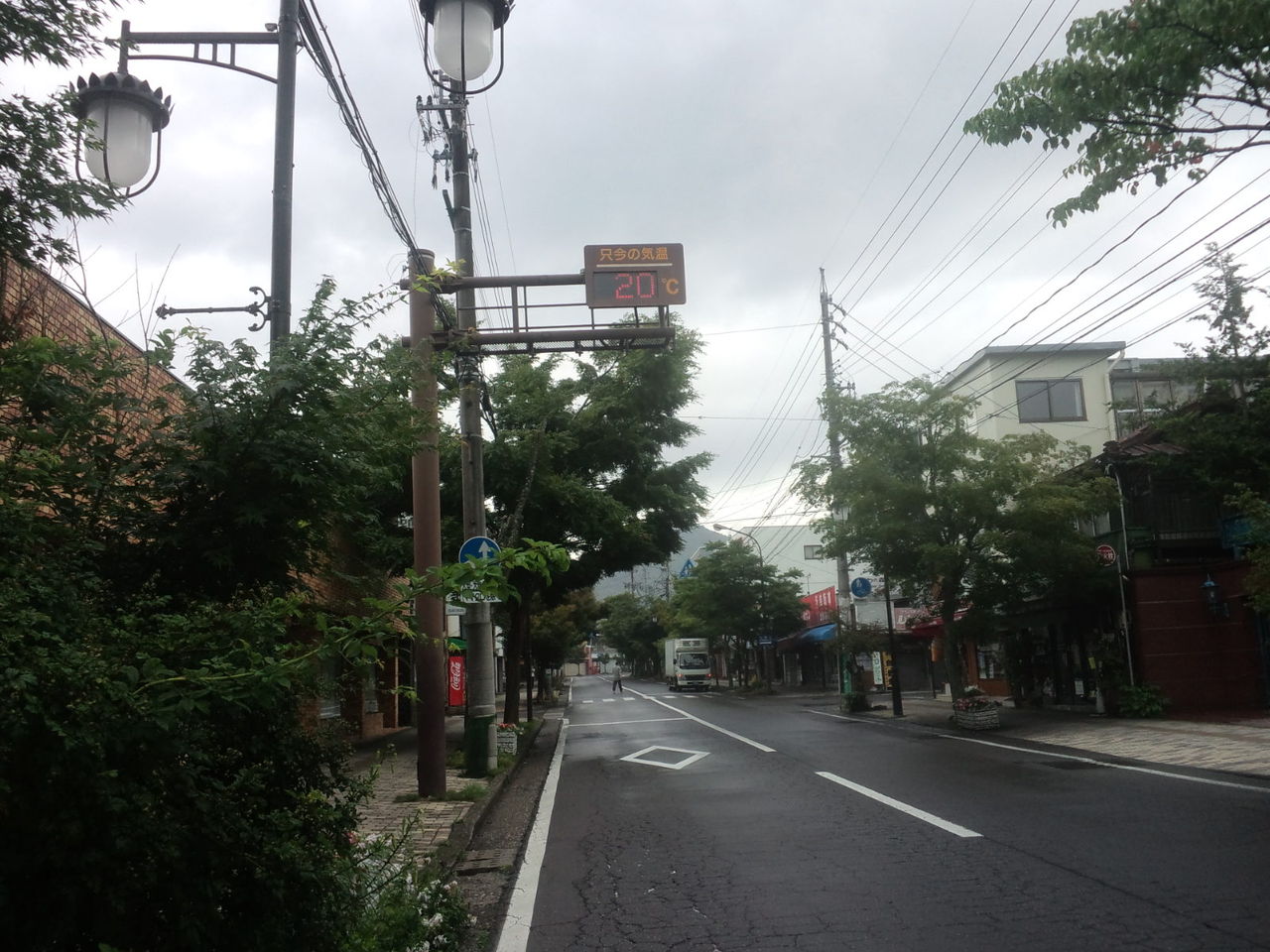 今朝の軽井沢の気温は20℃、天気は雨が止んで曇り空です。