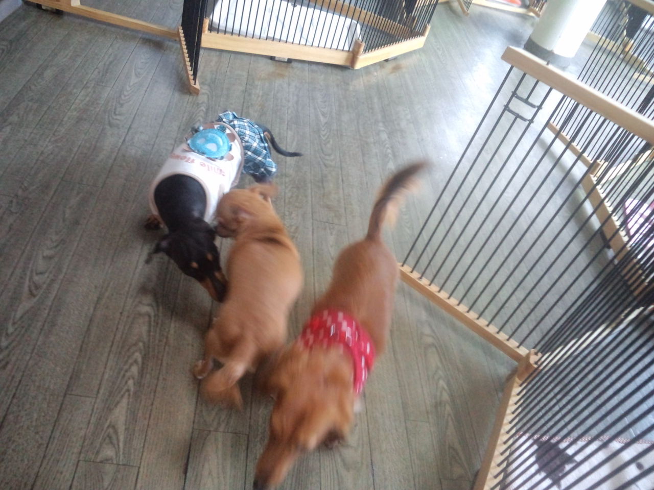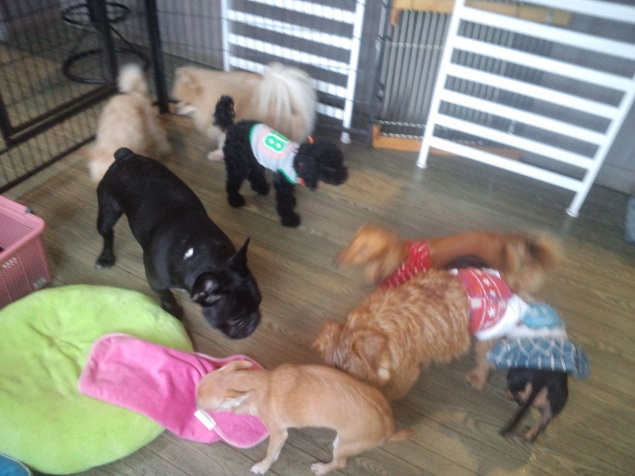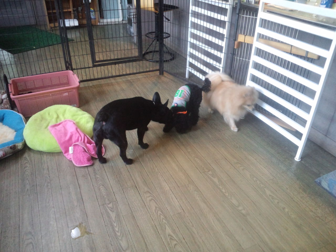物怖じせずにすぐにサークルから出て、みんなと仲良く出来てます。パーティー君も何となく大丈夫みたいです。