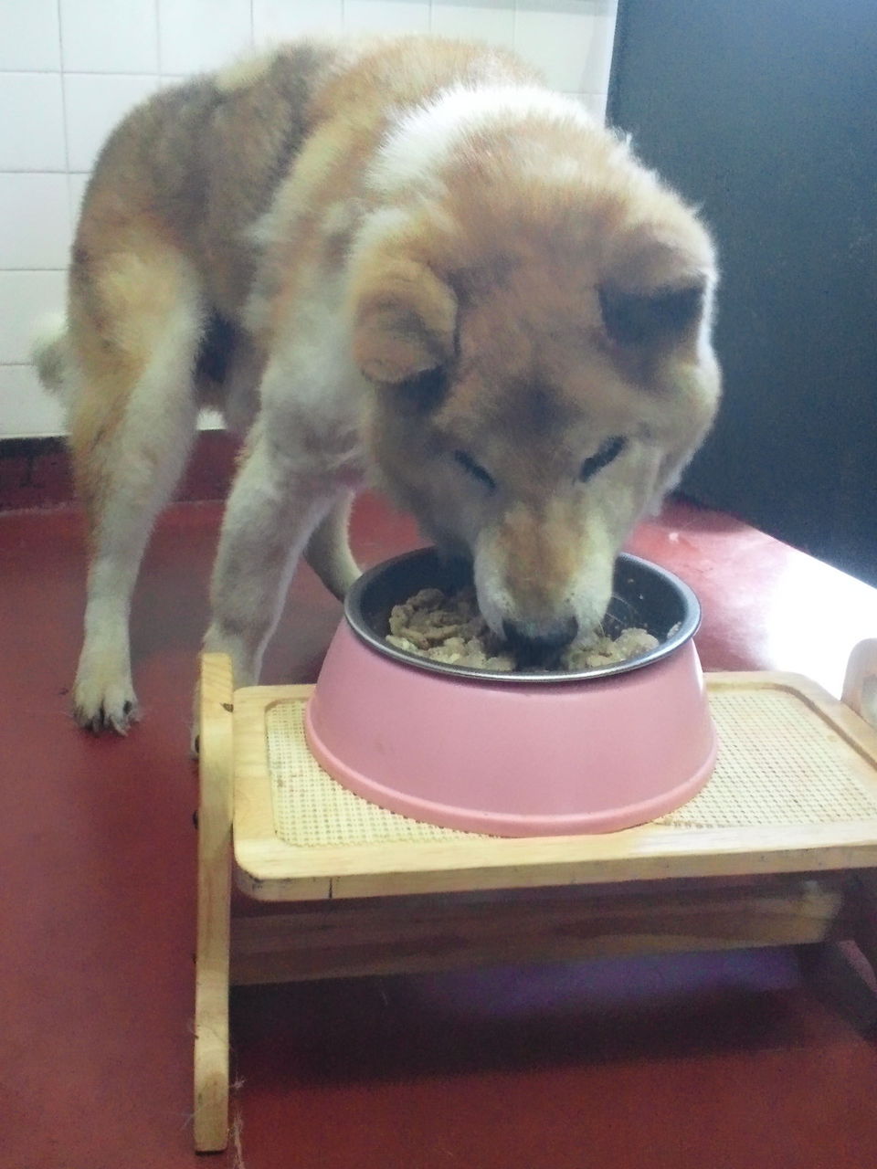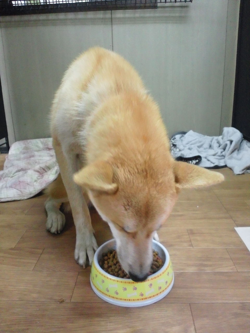 生涯お預かり柴犬タローくんゆっくり食べています。