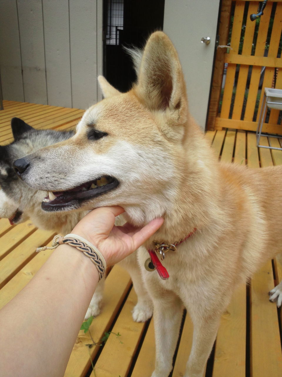 秋田犬と柴犬のミックスのアキくんです。 足が長くてカッコイイですね!
