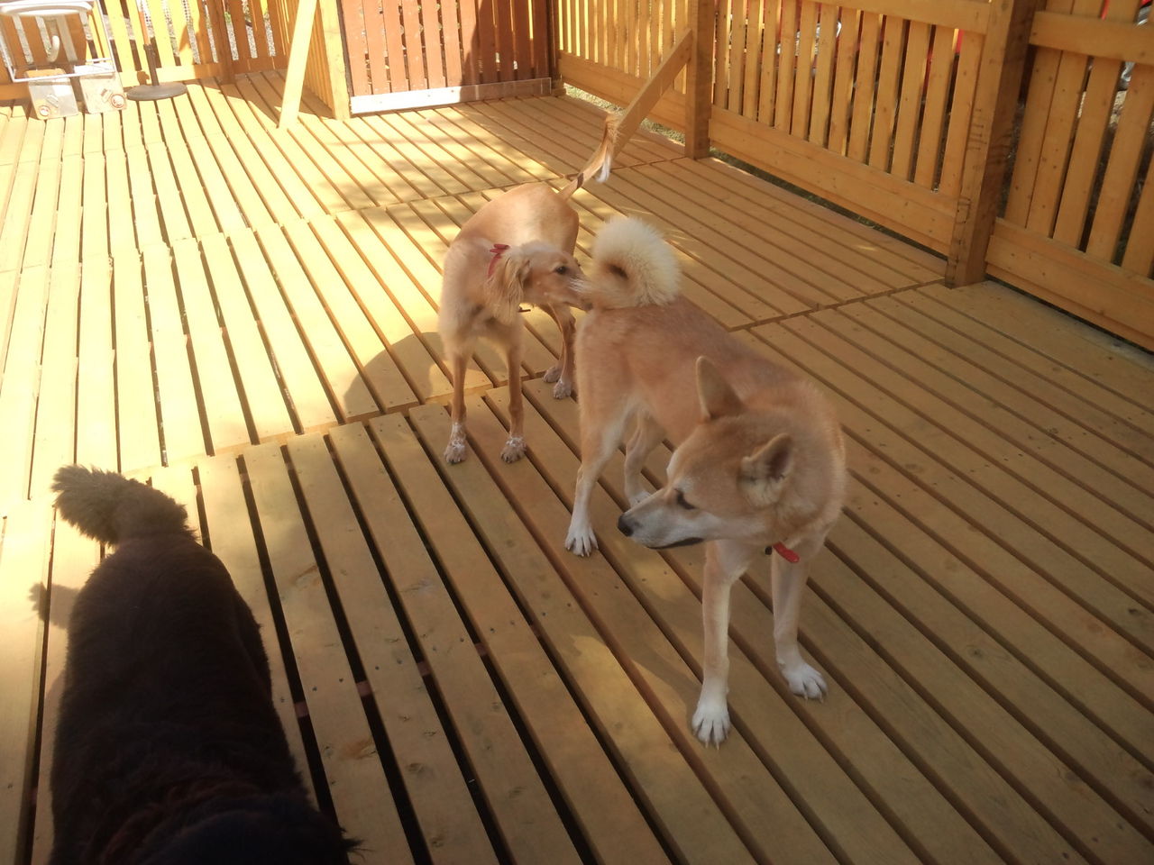 今日はドッグランカフェのリョウさんの方にお散歩です!! リョウさん手前でうんちをしてスッキリのハチくんでした。