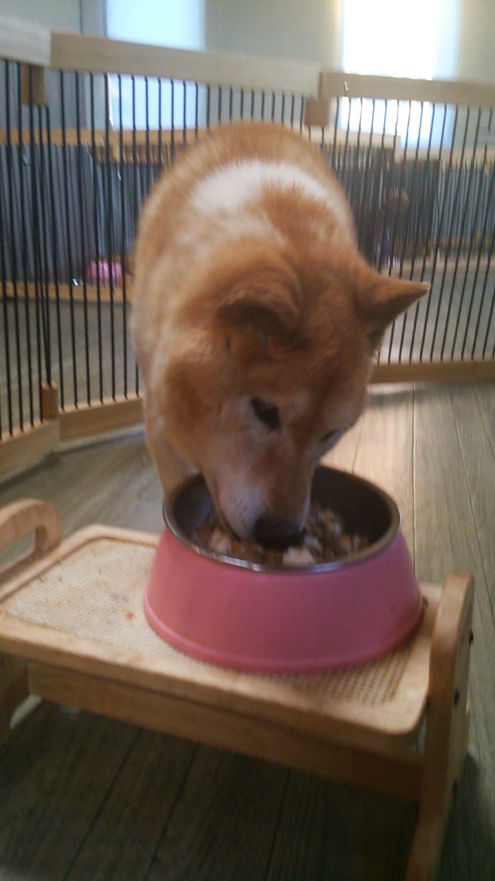 生涯お預かり柴犬タローくんゆっくり食べています。