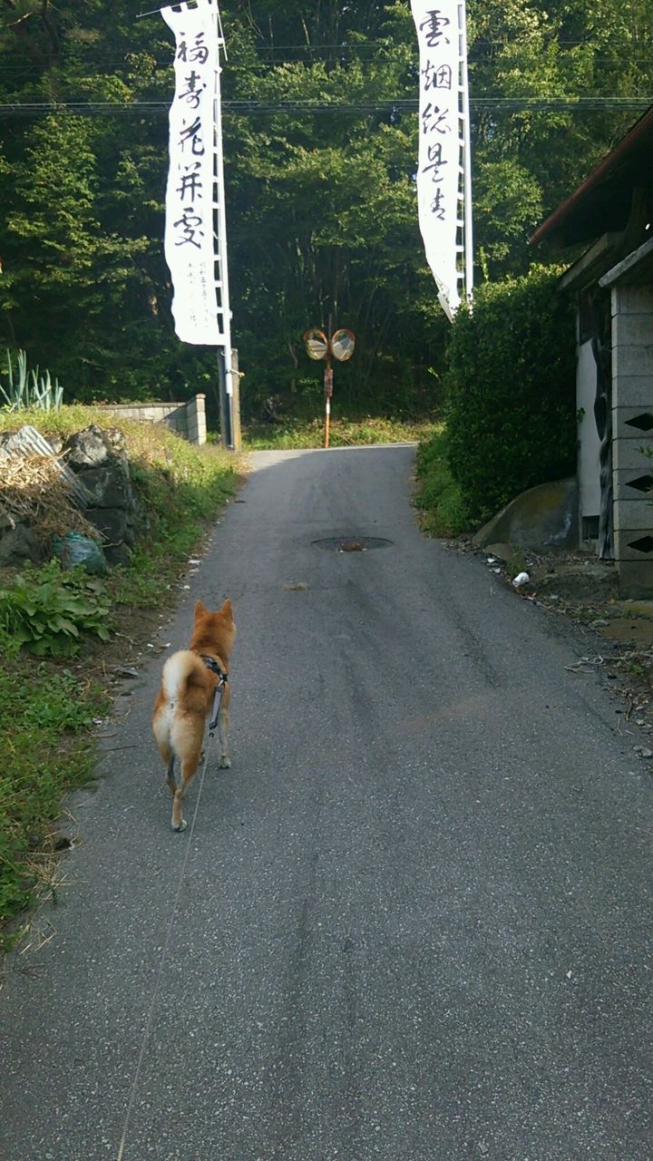 今朝は風が強いです。 お祭りの旗がはためいています。ハチくんは怖かったのかすごく警戒しながら見ていました。