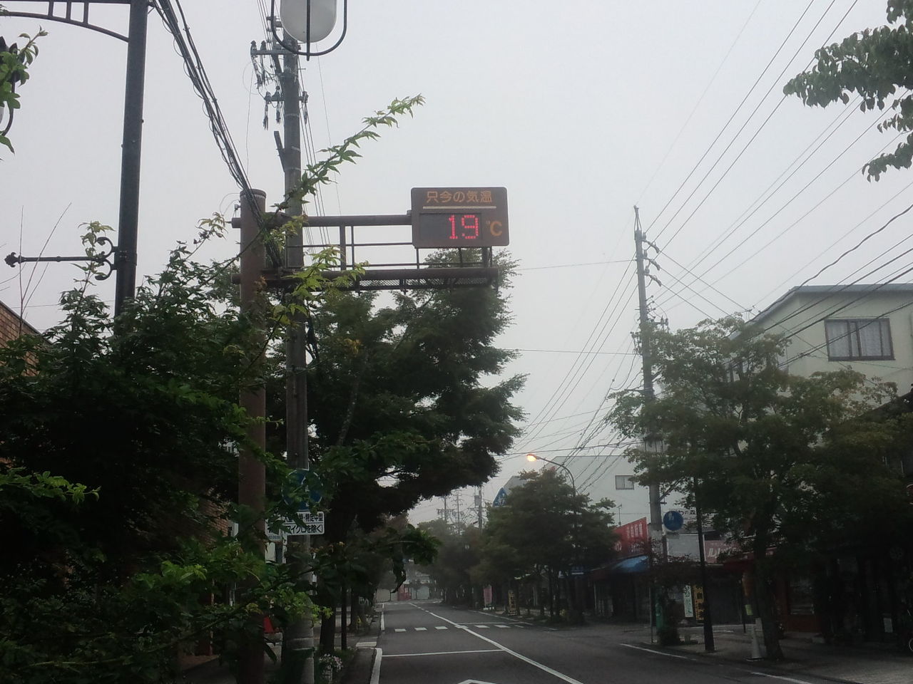 今朝の軽井沢の気温は19℃、天気は霧です。