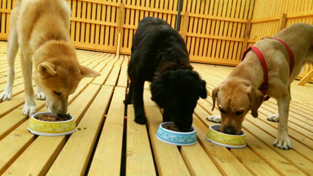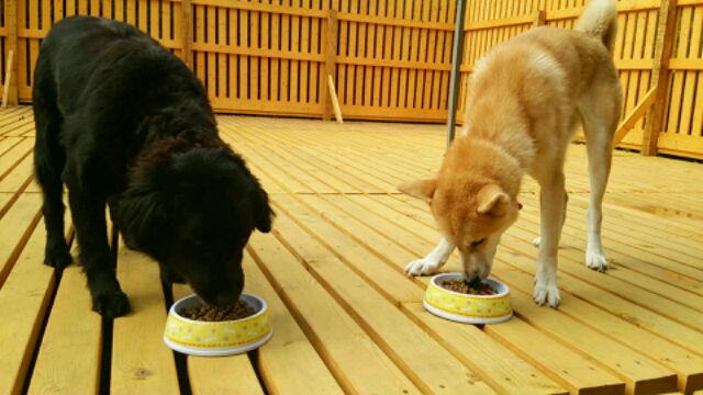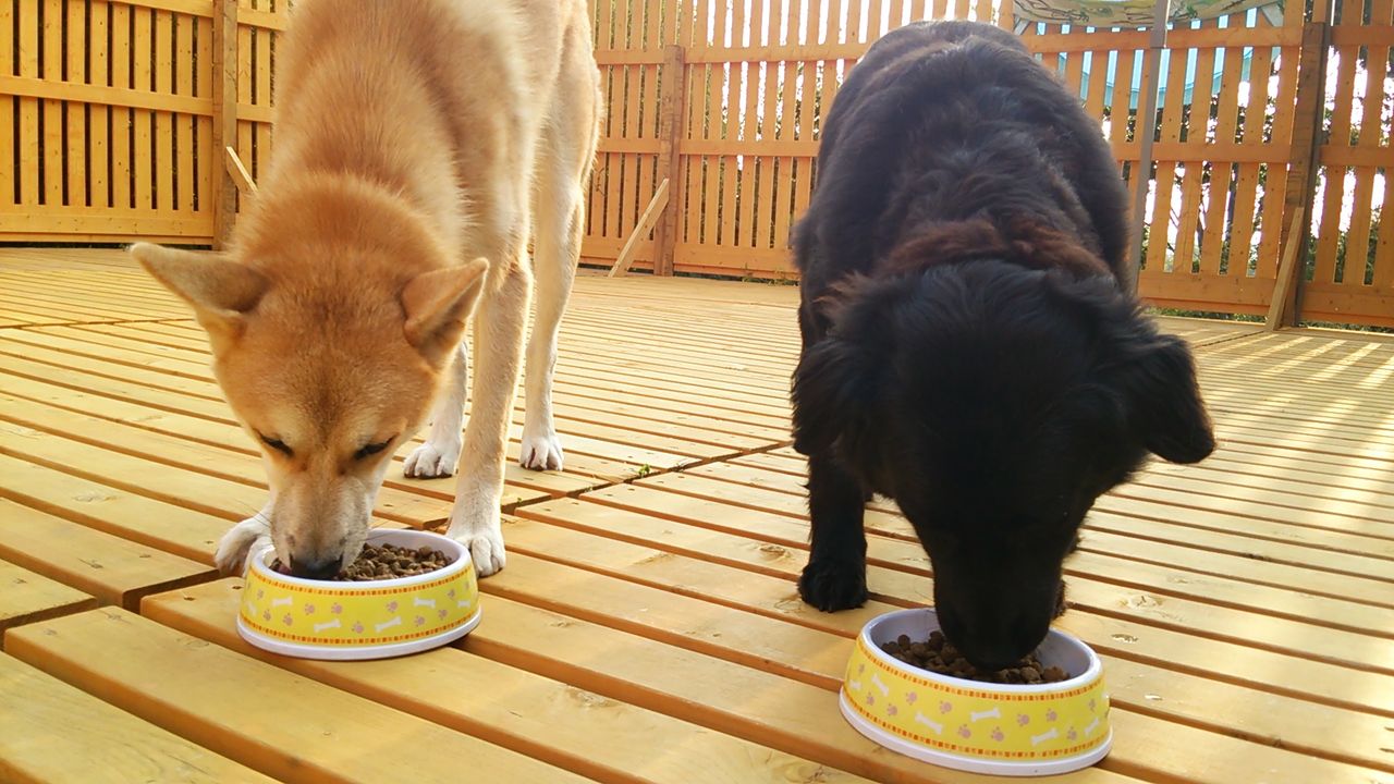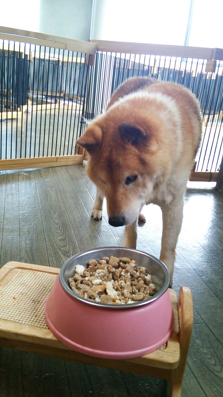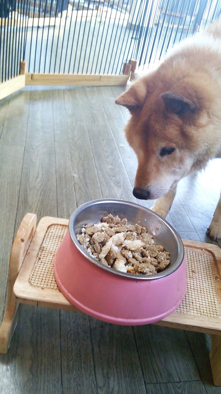 生涯お預かり柴犬タローくんゆっくり食べています。