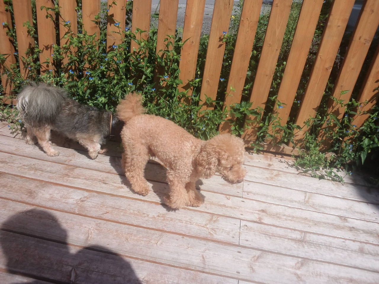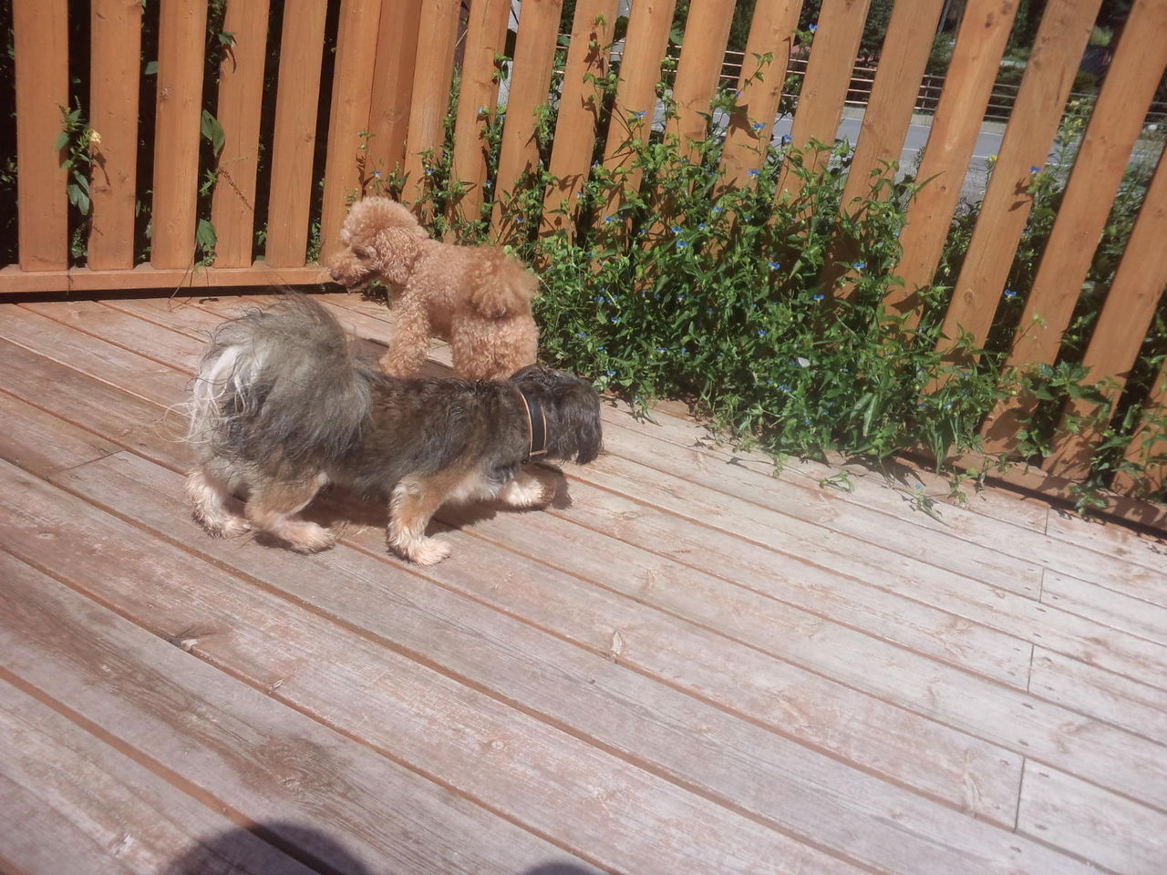 マーキングし放題です。トイプーディラン君を気に入って、ずっとついて回ってます。