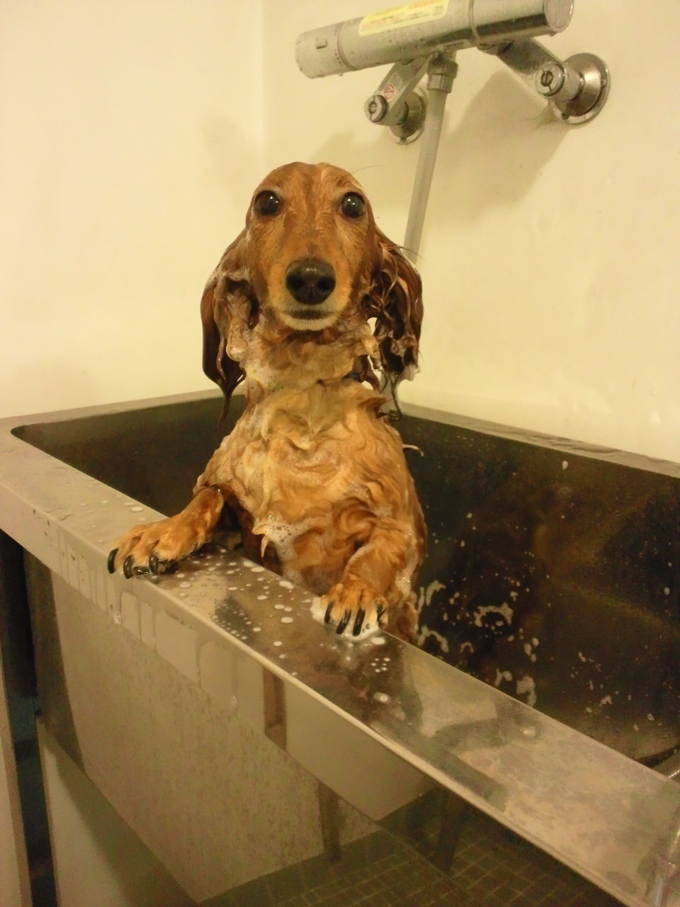 シャンプーが苦手なようでヒュンヒュン鳴いちゃいました…。