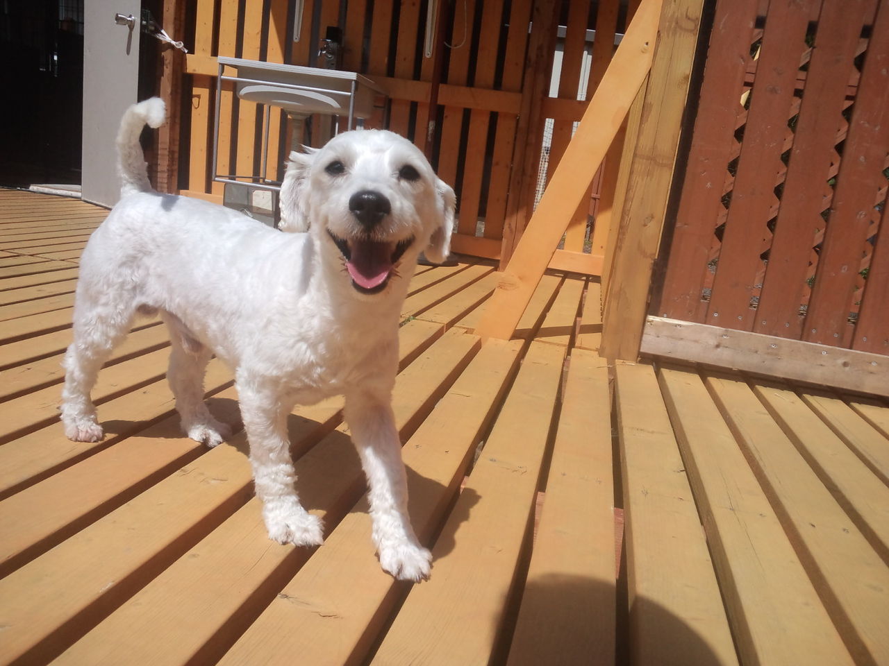 朝からみんなデッキに出しているので、ダウ君もそのままデッキに直行です。
