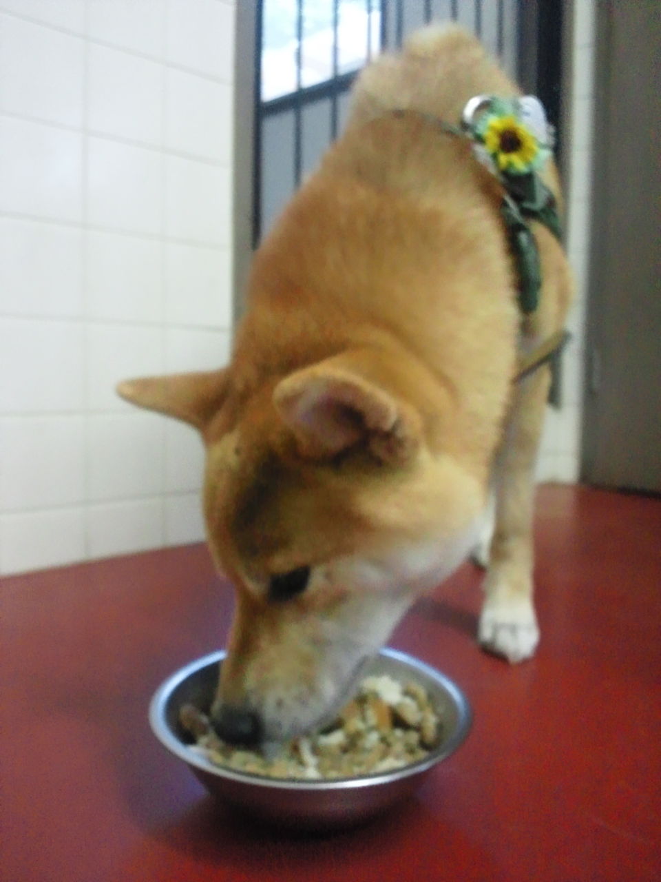 生涯お預かり柴犬タローくんゆっくり食べています。