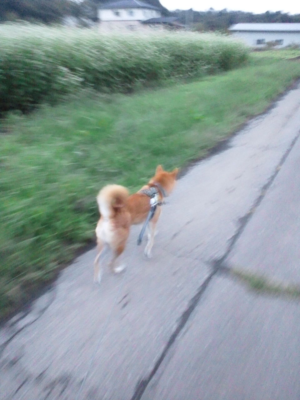 今日は夕ご飯の後のお散歩なので少し暗くなり始めています。