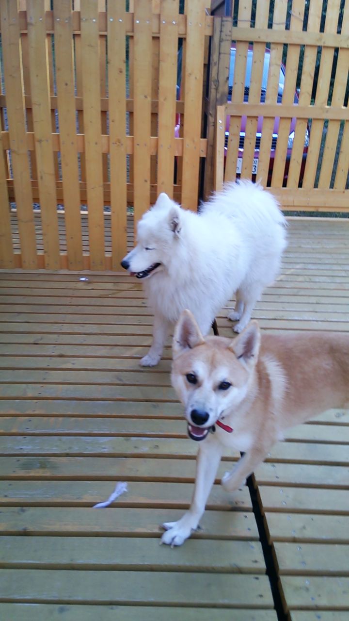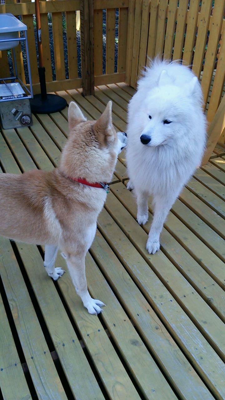 常連のサモエドてんきゅうがチェックインしました。 前回ご利用頂いた時も会っているミックスアキくんとは歳が近いのですぐに仲良くなって遊んでいます♪