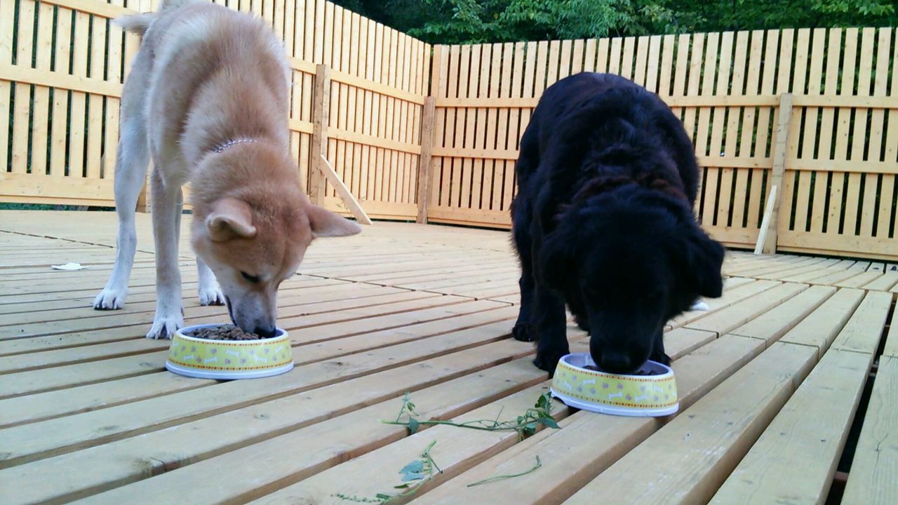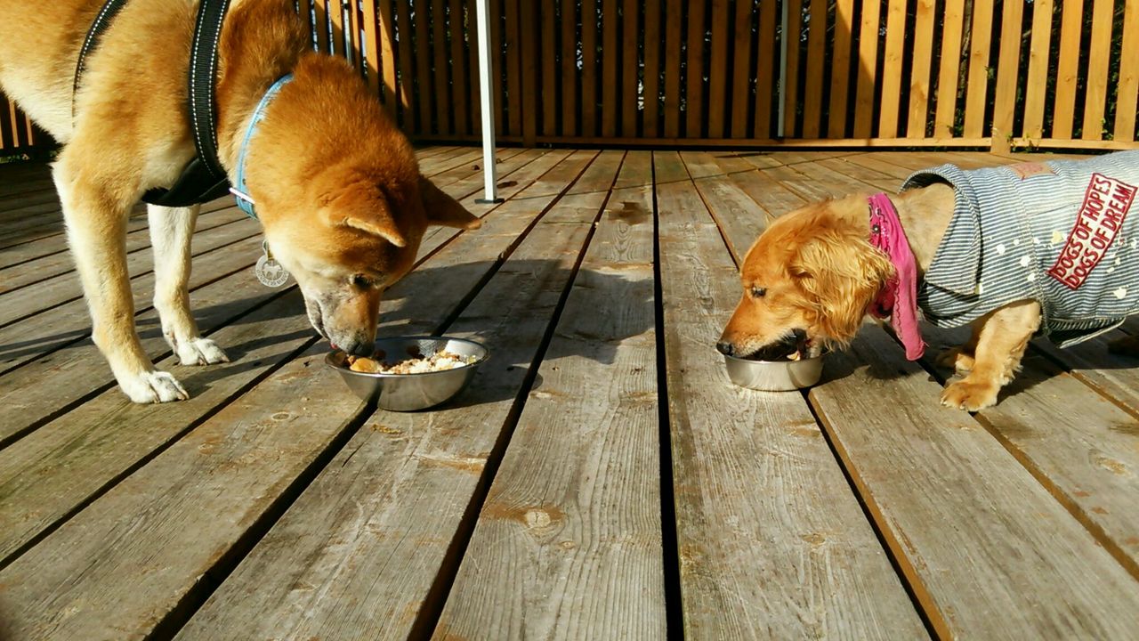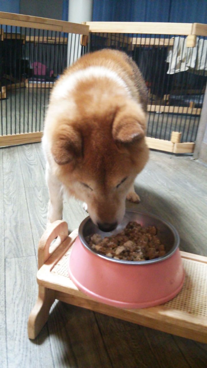 生涯お預かり柴犬タローくんゆっくり食べています。