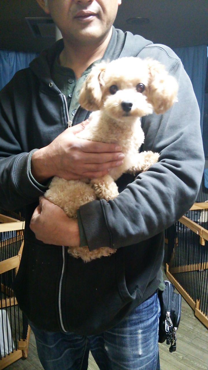 少し犬見知りのモコ助くんですが、人は好きみたいで店長に抱っこしてもらい少し緊張が解けたみたいです。