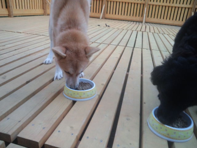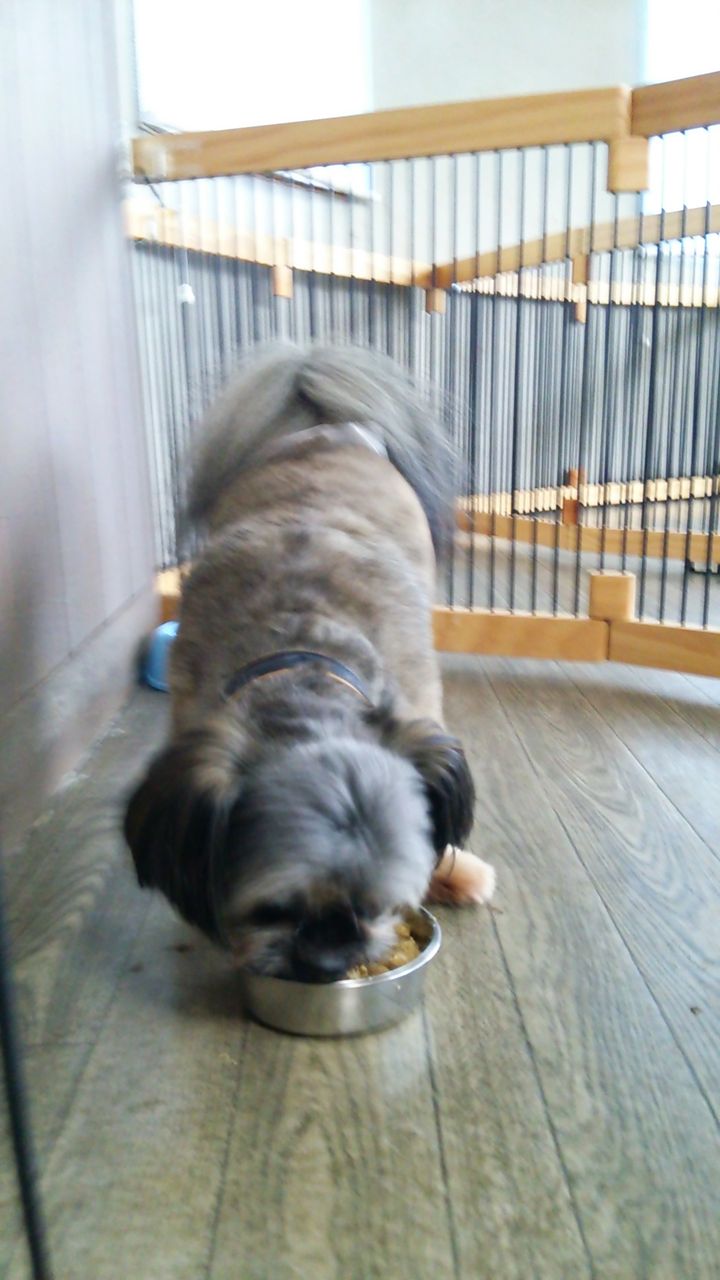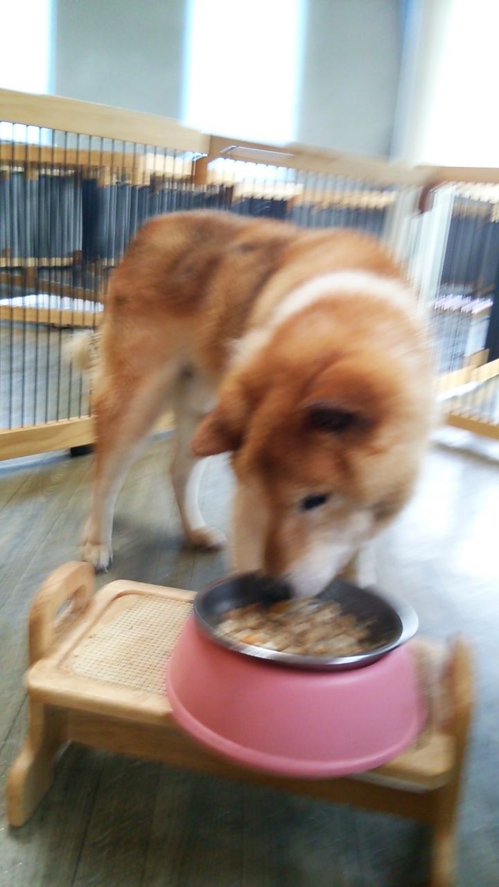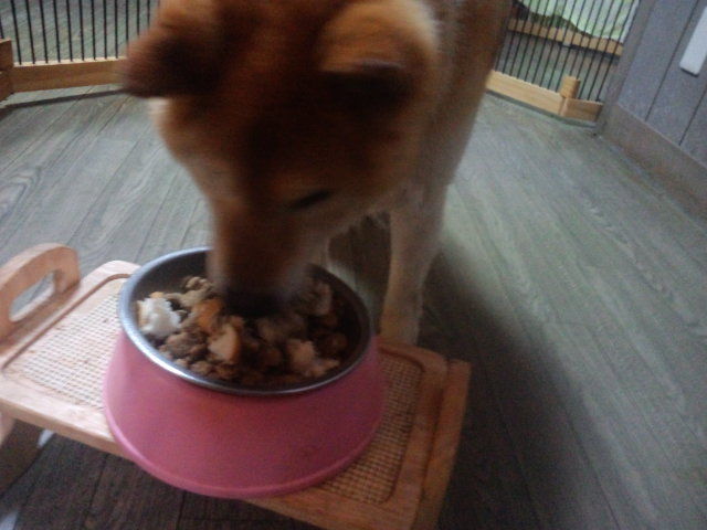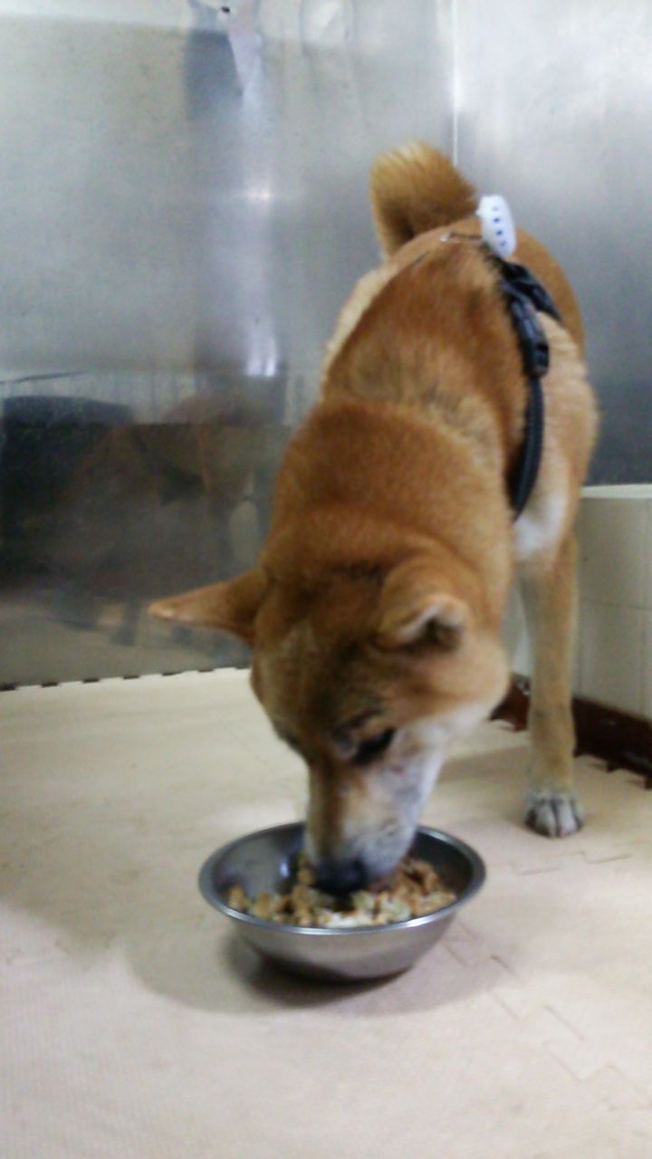 生涯お預かり柴犬タローくんゆっくり食べています。