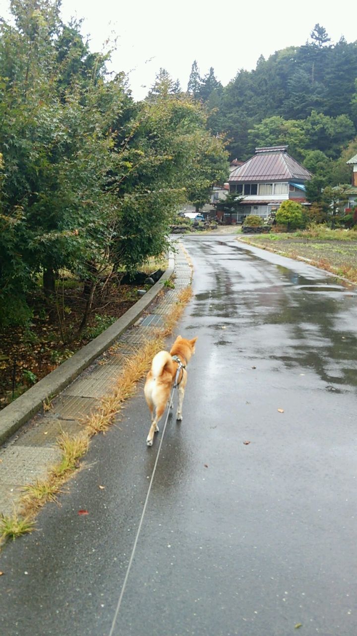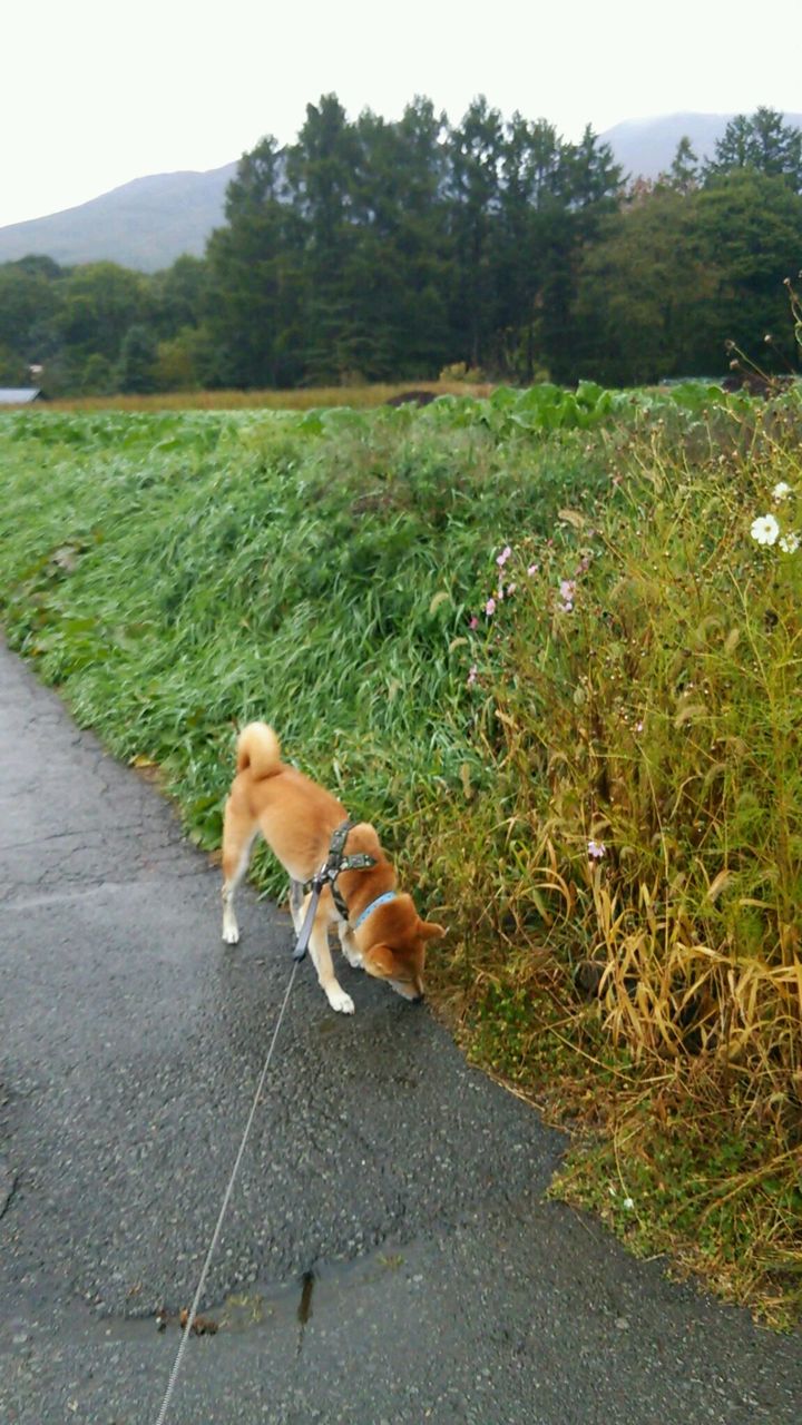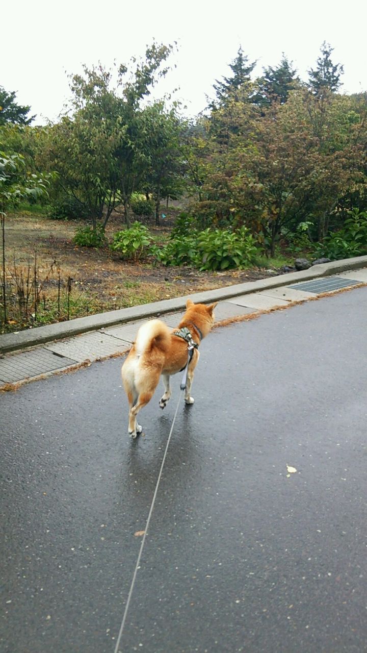 雨が小雨になったので急いでお散歩です。帰り際に雨が強くなりましたが、それまではほとんど濡れずに済みました! おしっこをたくさんして、花や草の匂いをたくさんクンクンしました。