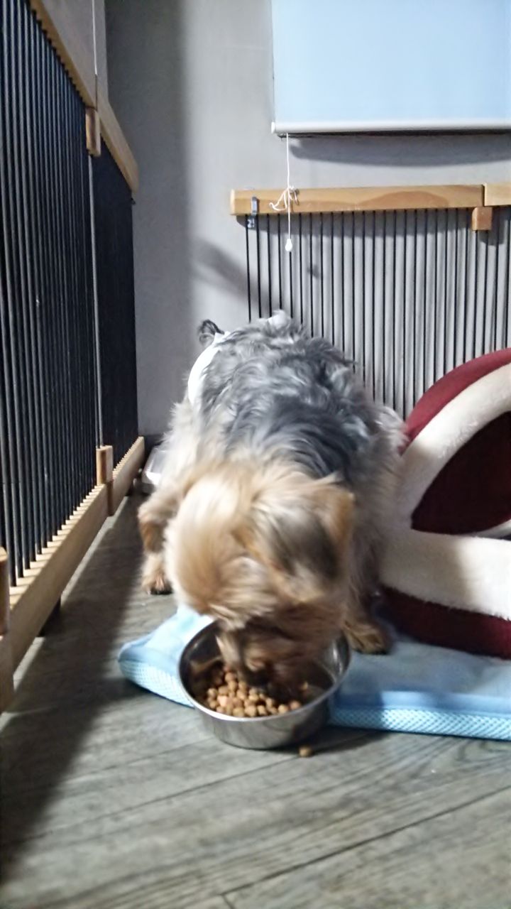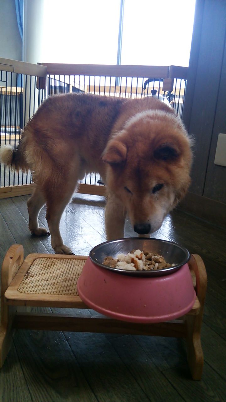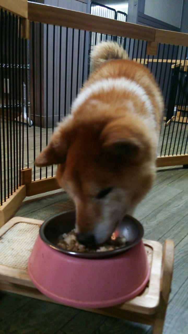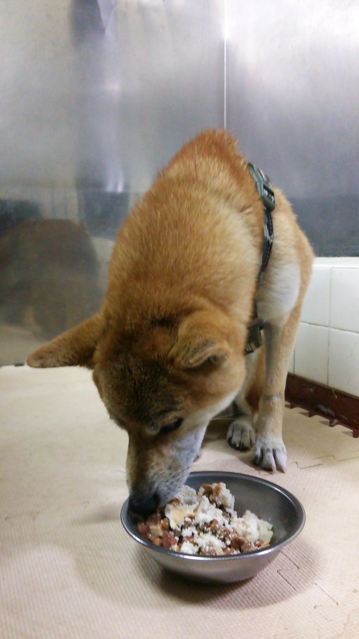 生涯お預かり柴犬タローくんゆっくり食べています。