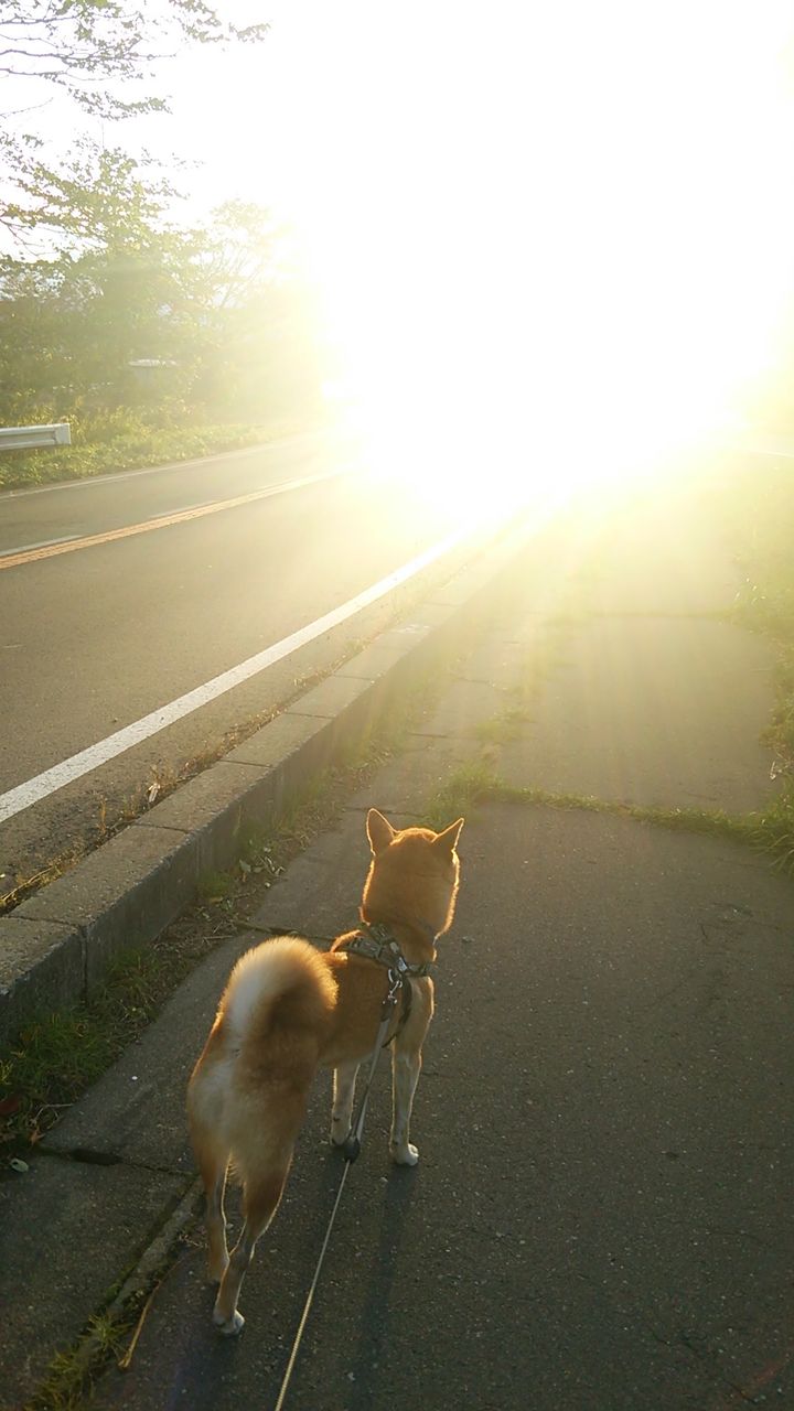 台風が過ぎ去って夕陽が綺麗な夕方になりました。 ハチくんの目が久しぶりに線になるくらい大きな眩しい夕陽でした。