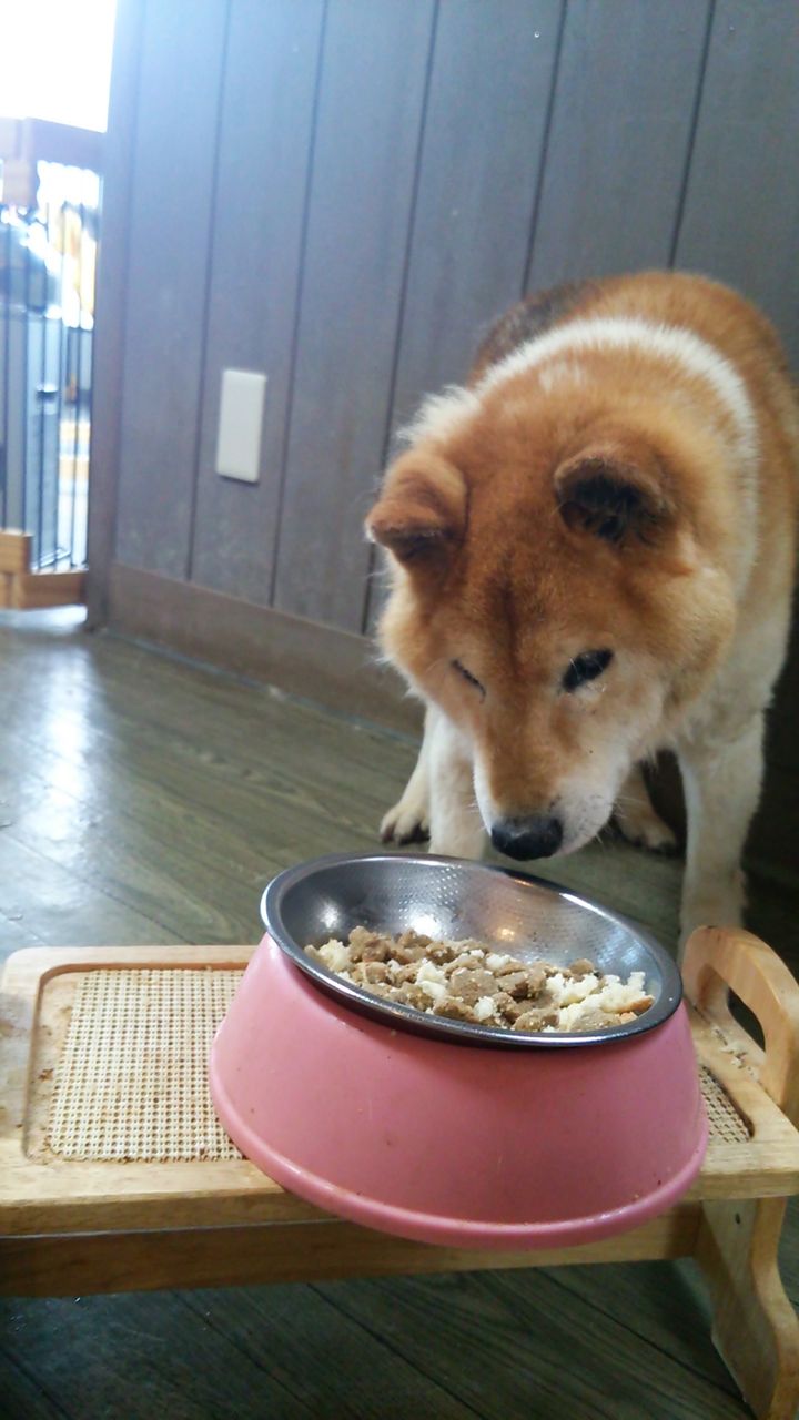 生涯お預かり柴犬タローくんゆっくり食べています。