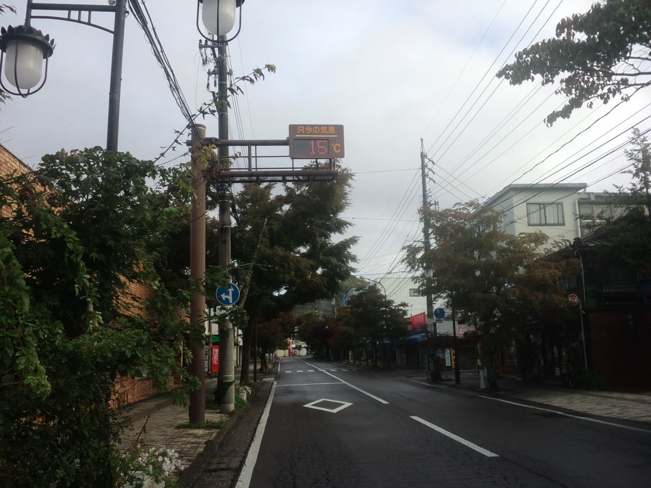 今朝の軽井沢の気温は15℃、天気は雨が上がって晴れ間が見えてます。