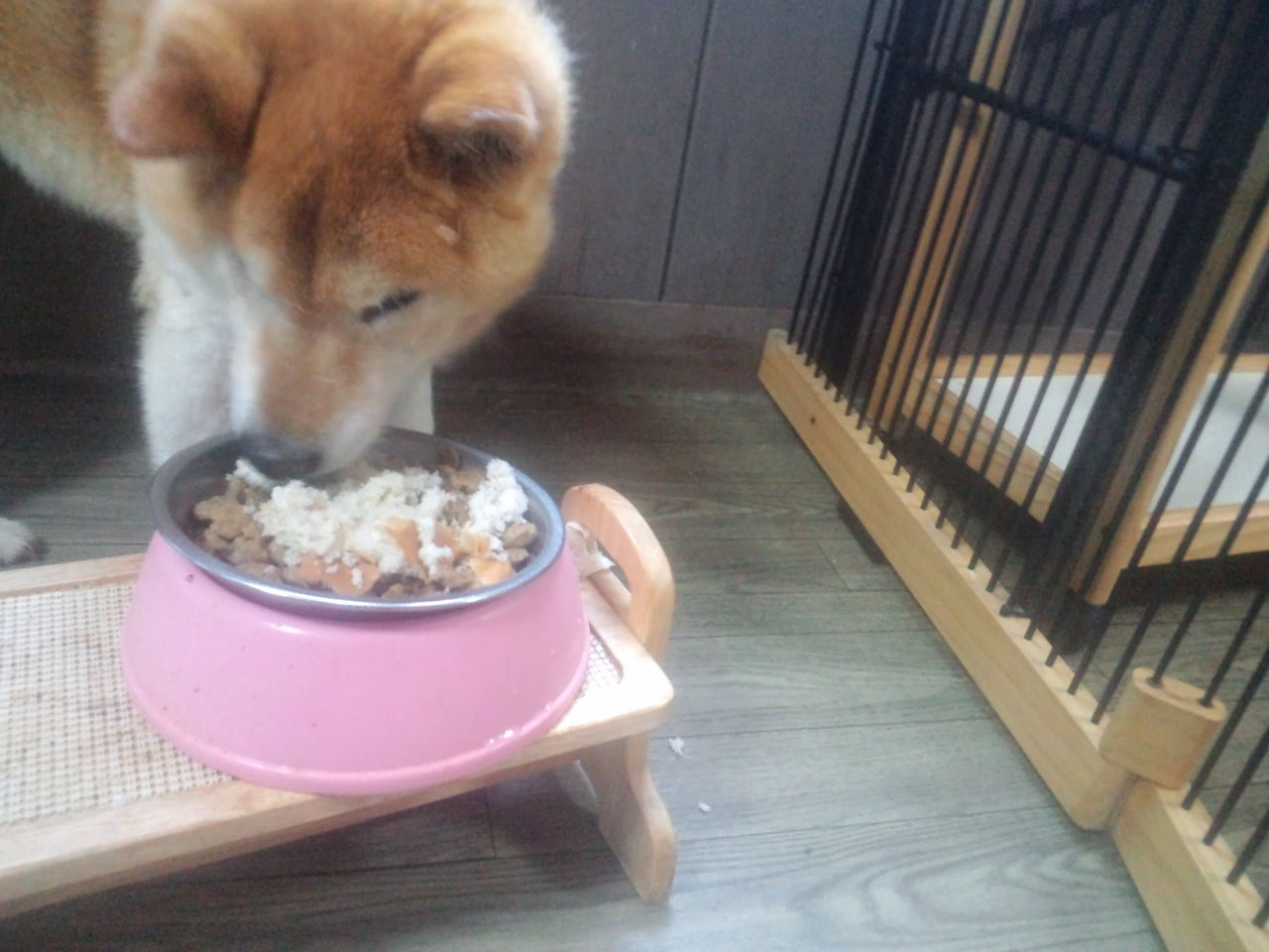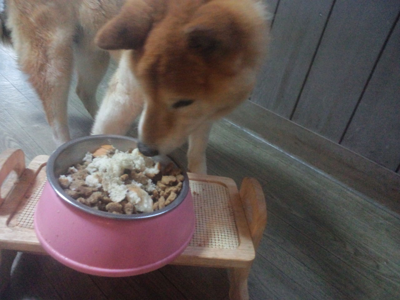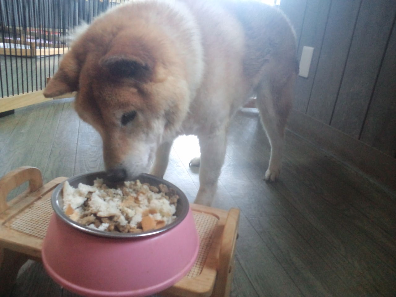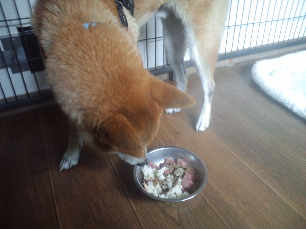 生涯預かり柴タロウ君、少しずつ食べてます。