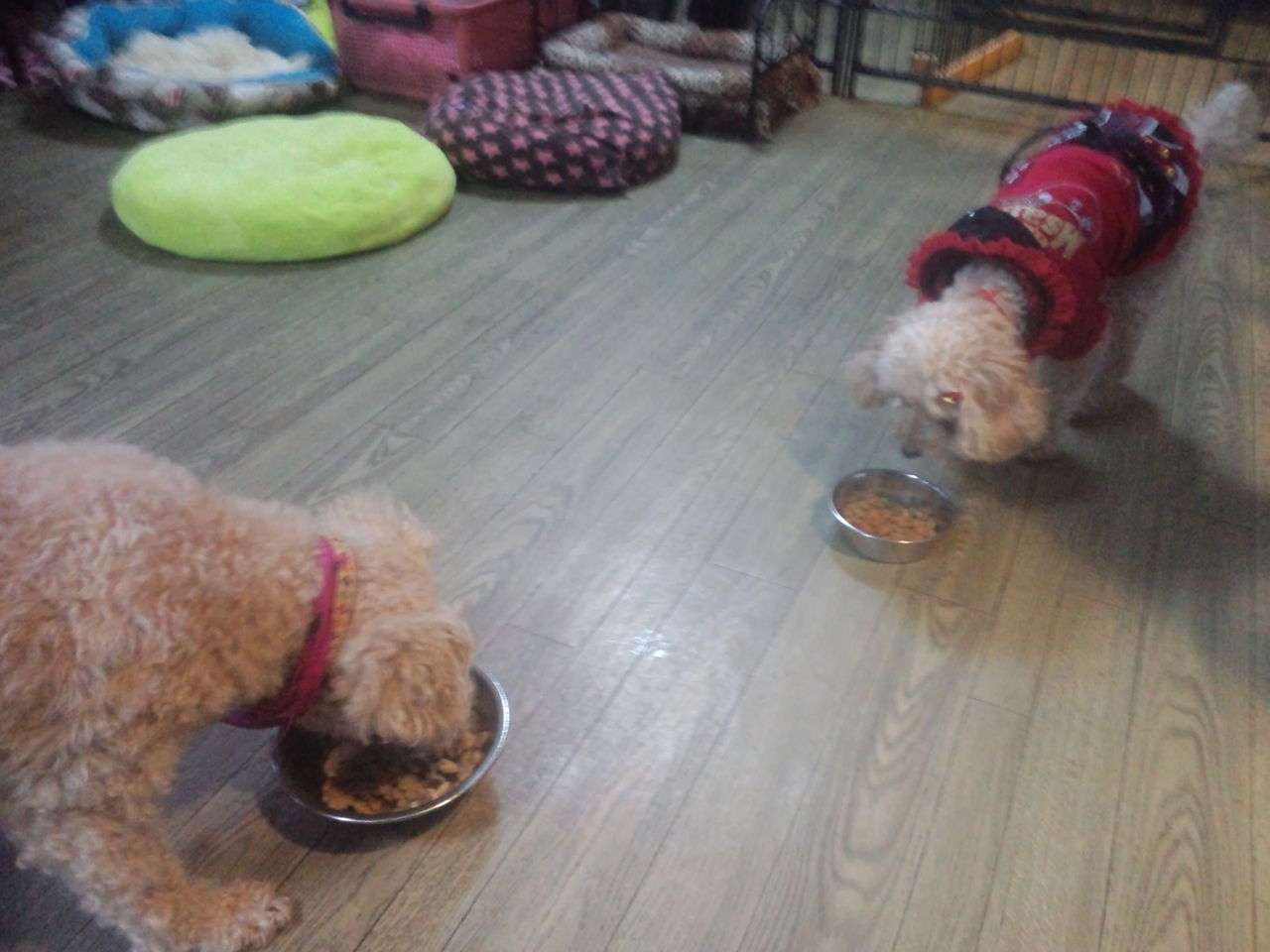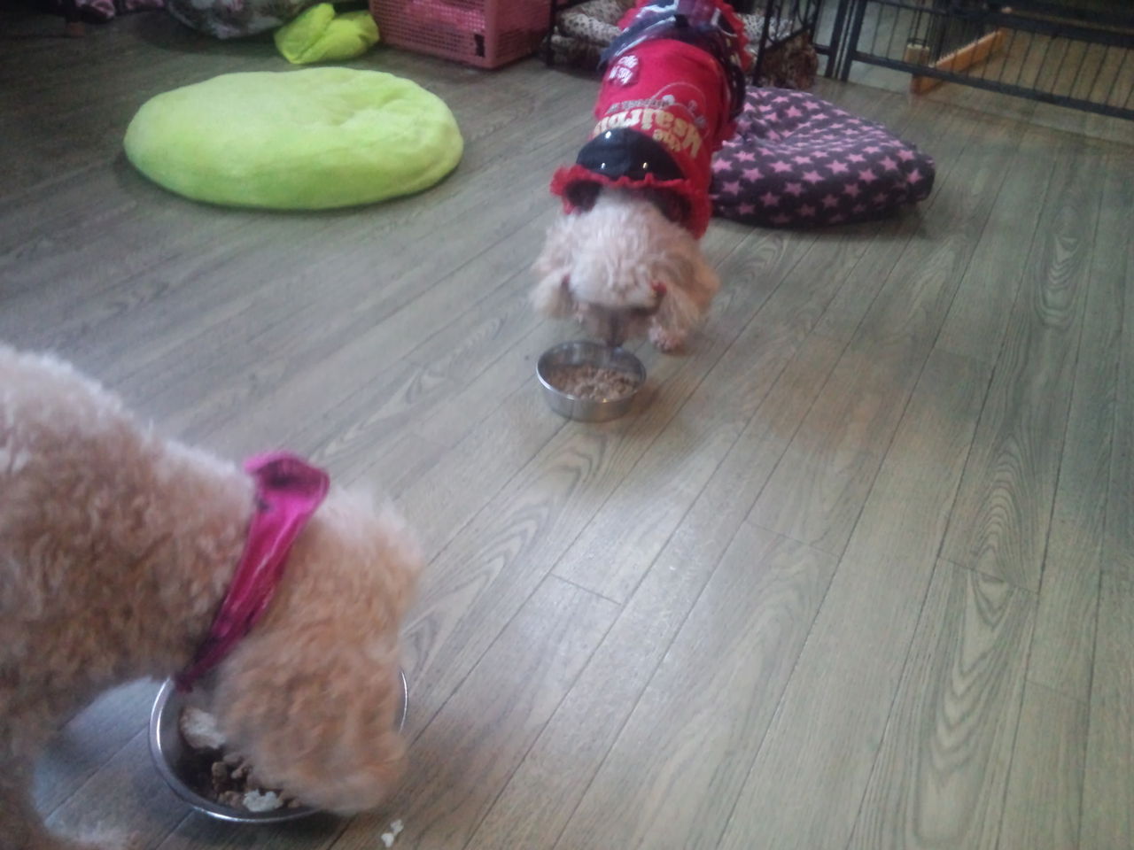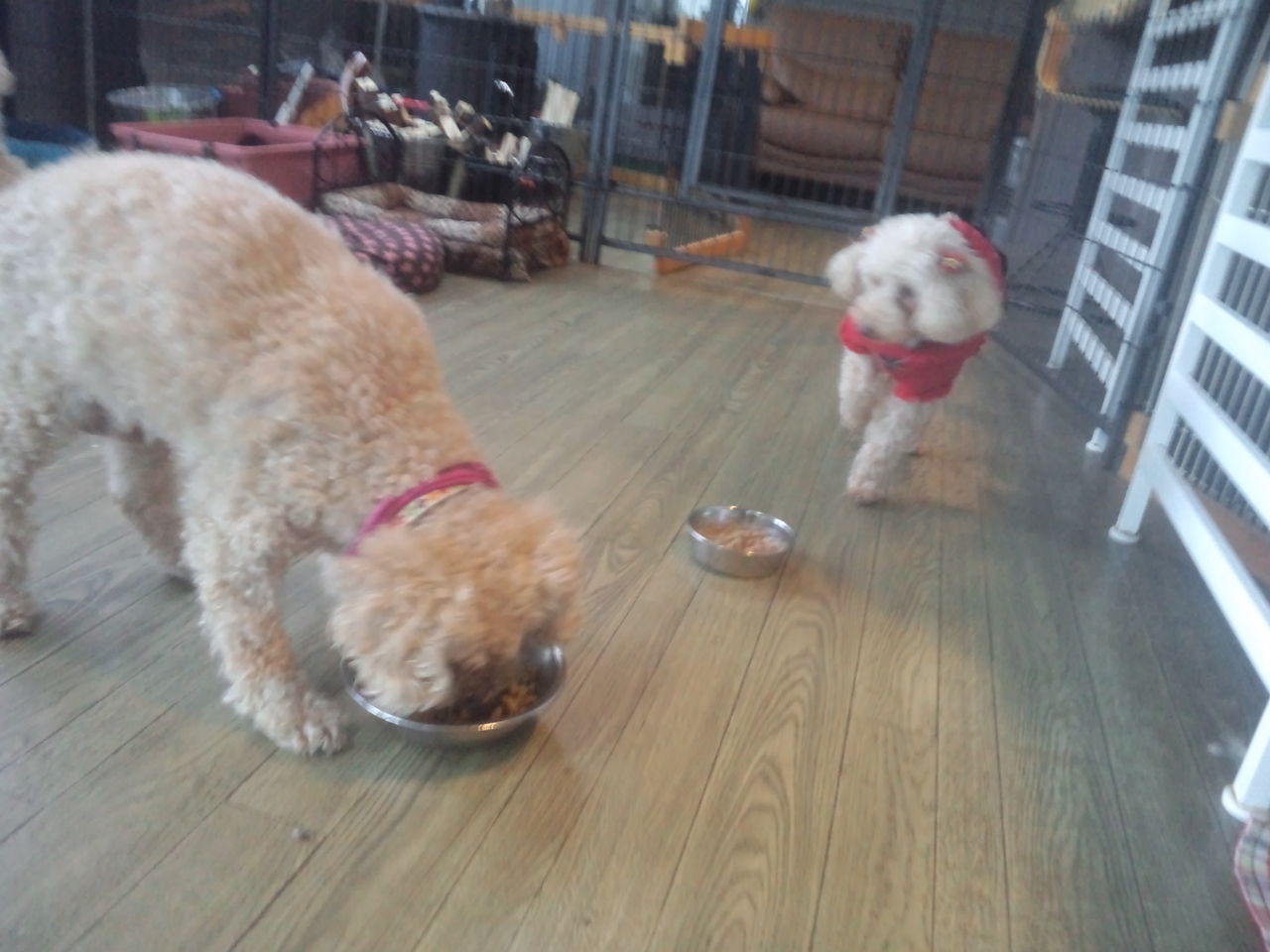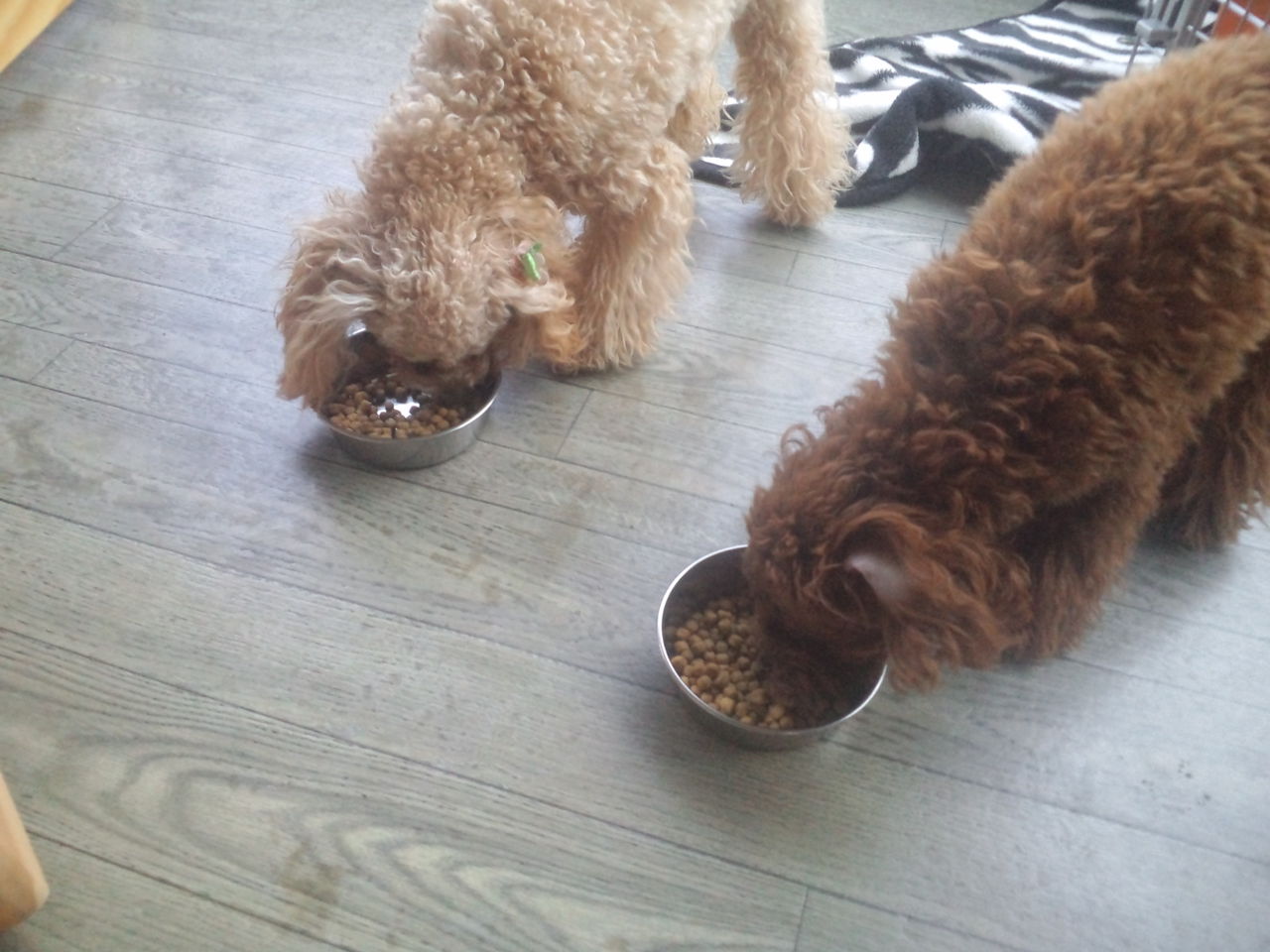トイプーちゃんズのココちゃんとプリンちゃん、しっかり完食しました。