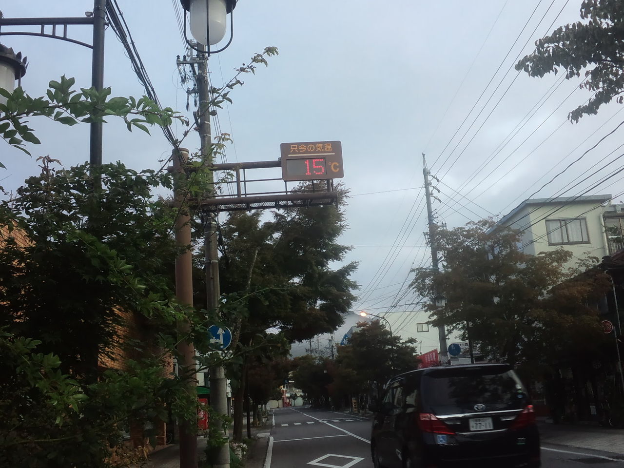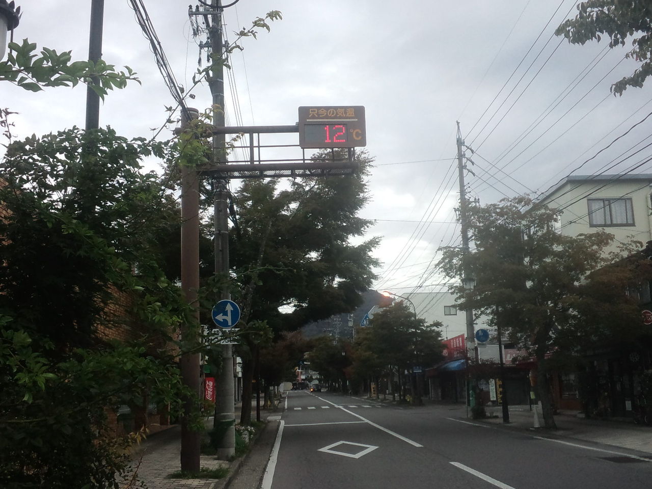 今朝の軽井沢の気温は12℃、天気は雨がパラついてきました。