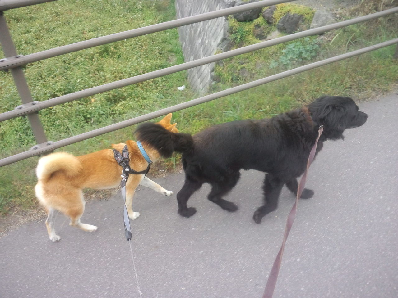 今日は大治郎と一緒にお散歩しました。 臭いを嗅ぐのも一緒 歩くのも一緒