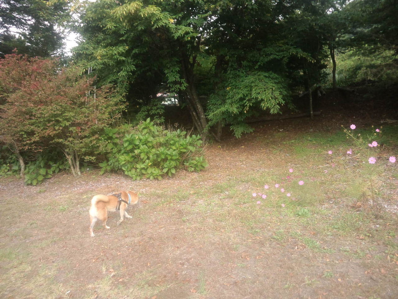 ハチ君は広場に入ると喜んで走り回ってます。すぐにもりもりウン〇もしました。