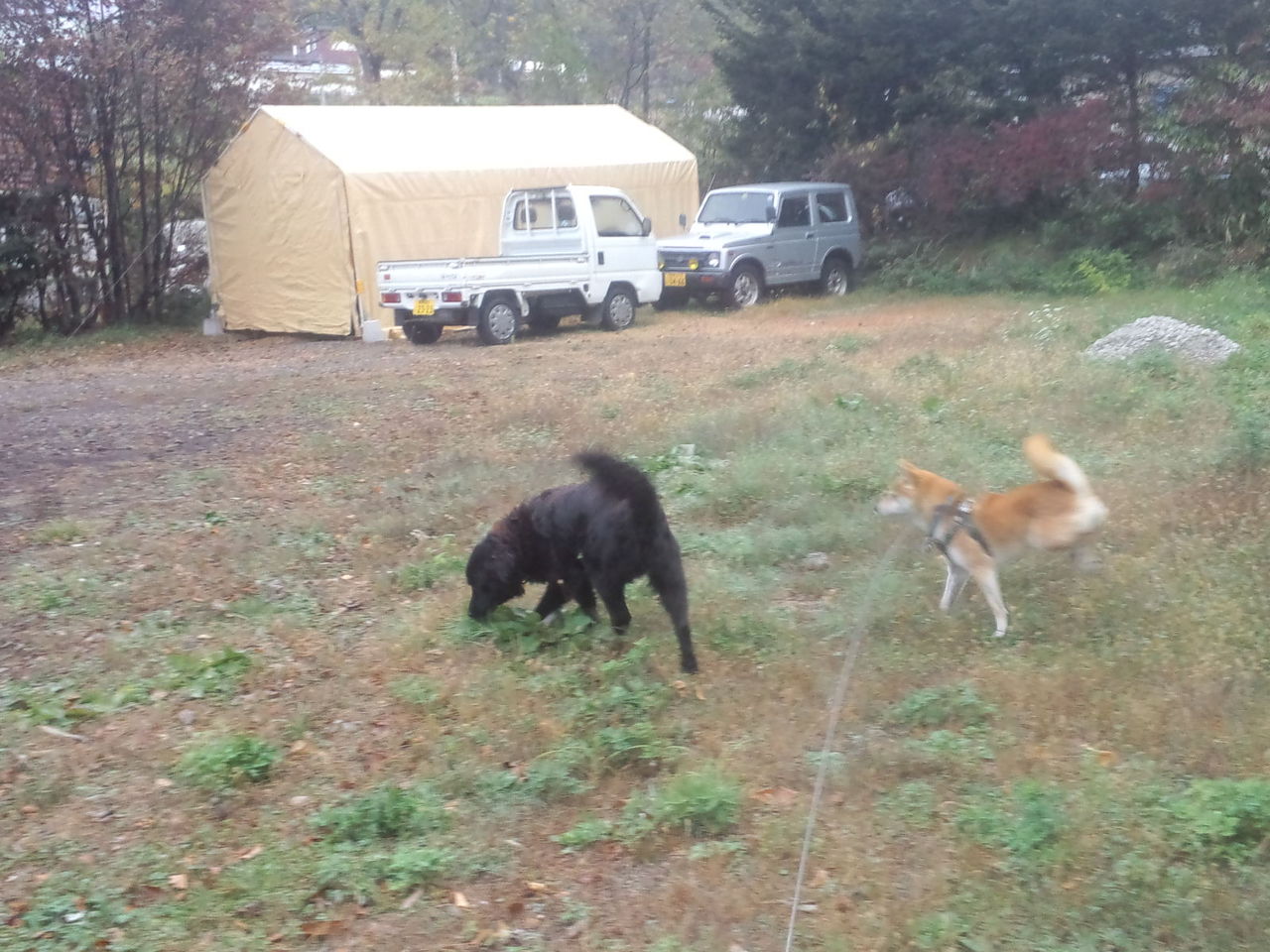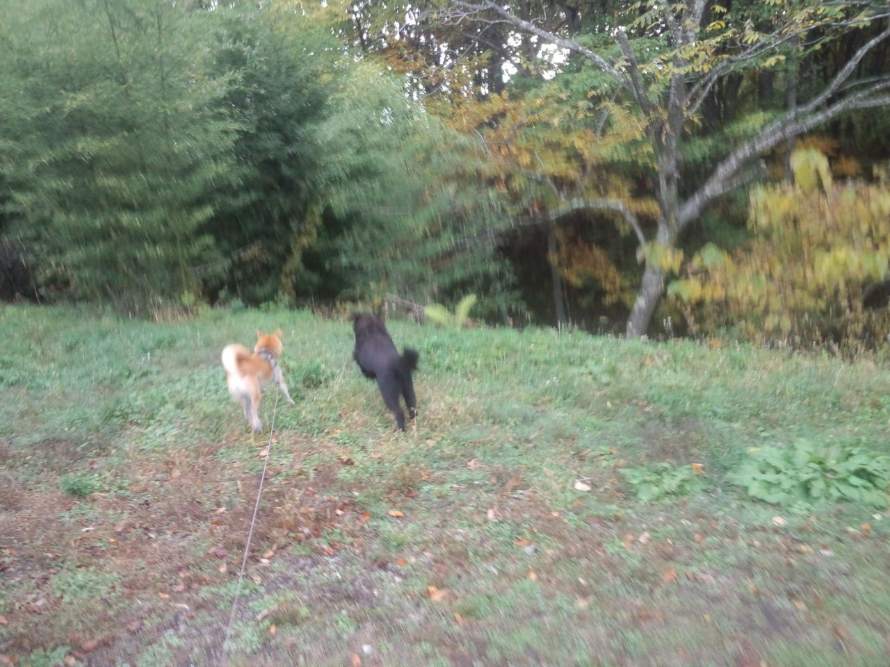 外に出てすぐに一緒に走り回り、走るのも一緒、オシッコも一緒。楽しそうでした。