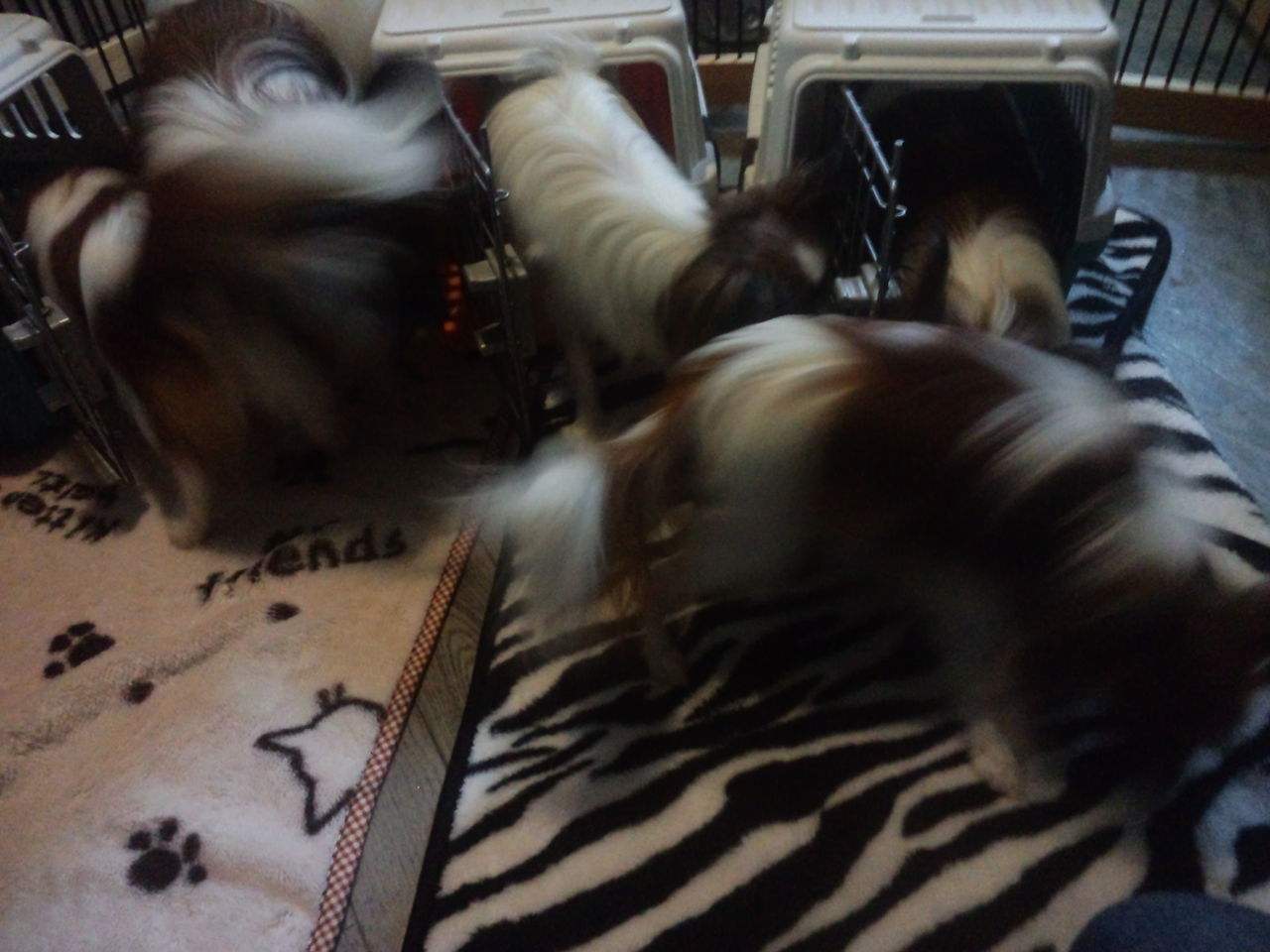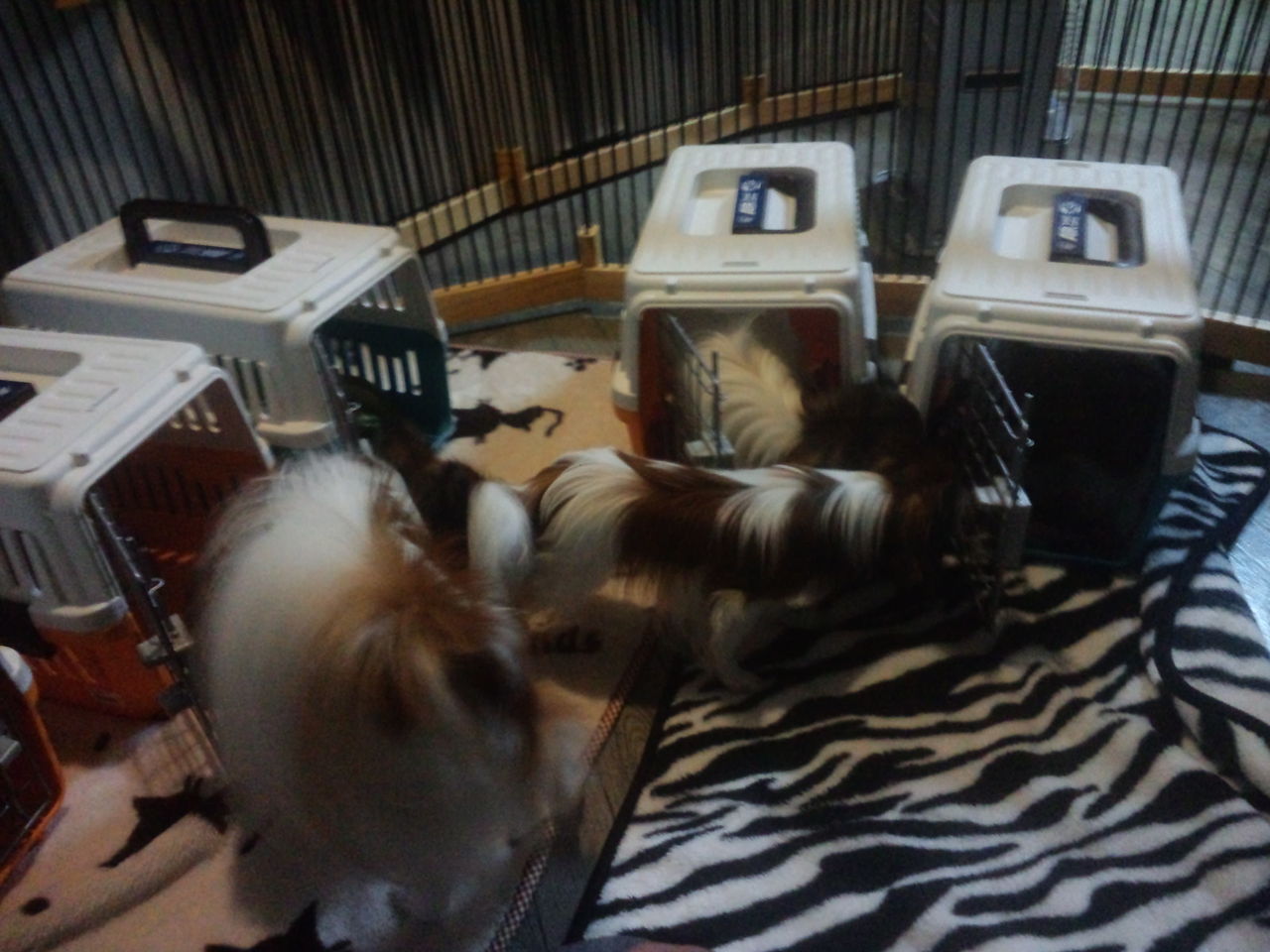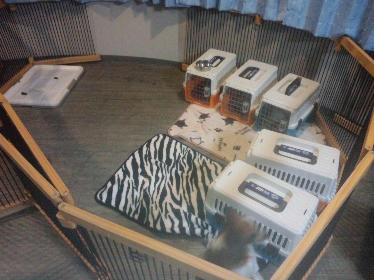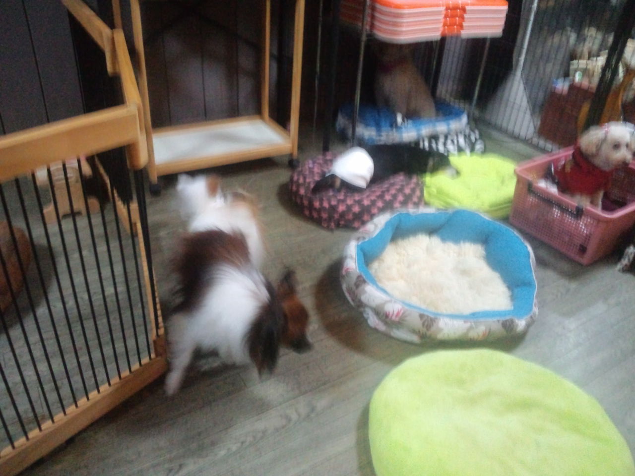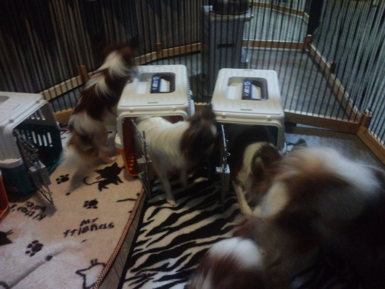 父さん母さんはサークルから出て走り回ってますが、子供達は少し怖がりでサークルやバリケンから出てきません。今夜はそのままお休みしてもらいます。
