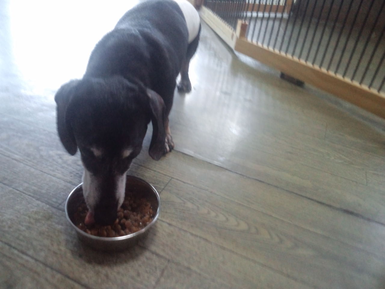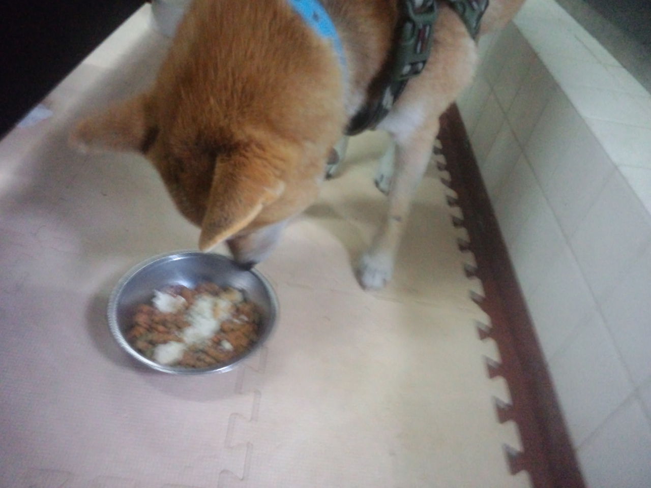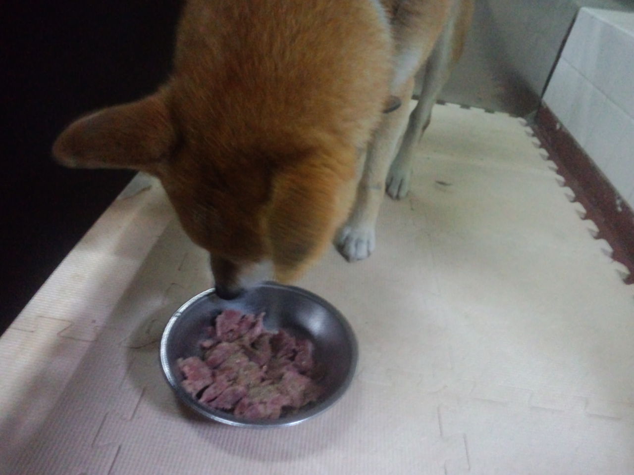 長期預かり柴ハチ君、半分食べました。 生涯預かりダックスズのラブ君とチャコ君、しっかり完食しました。